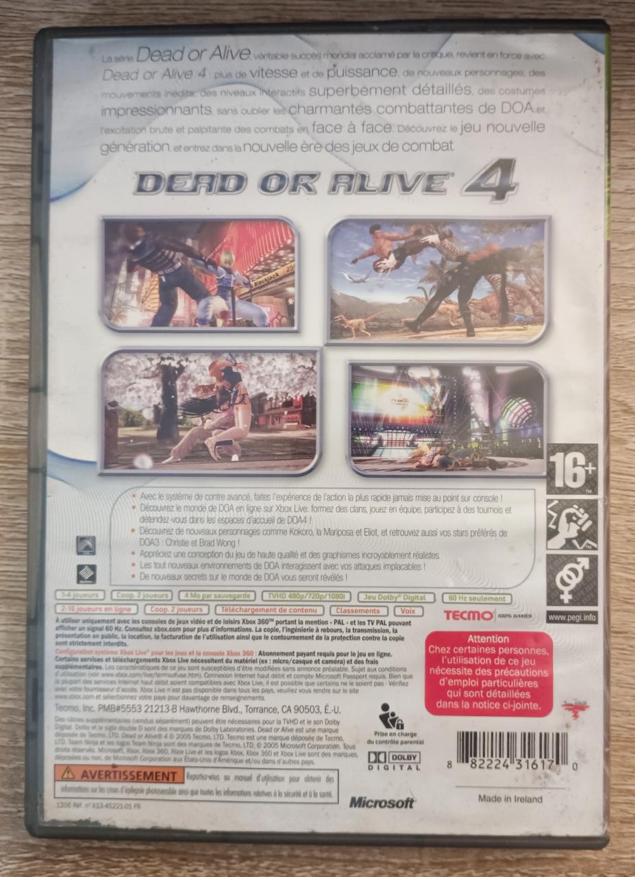 L1 - Dead Or Alive 4 - Classics Edition Xbox 360 - EAN : 882224316170 - ARTICLE OCCASION EN TRES BON ETAT GÉNÉRAL - BOITIER ORIGINAL XBOX 360 - JEUX JOUABLE EN FRANCAIS - LIVRAISON ULTRA RAPIDE EN COLIS SUIVI PROTÈGE - COVER E.U - COMPLET