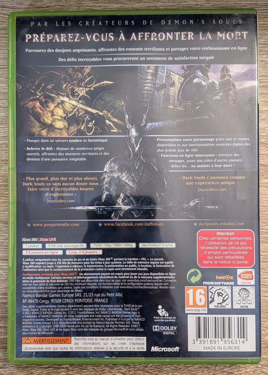 L3 -Dark Souls Xbox 360 - EAN : 3391891956314 - ARTICLE OCCASION EN TRES BON ETAT GÉNÉRAL - BOITIER ORIGINAL XBOX 360 - JEUX JOUABLE EN FRANCAIS - LIVRAISON ULTRA RAPIDE EN COLIS SUIVI PROTÈGE - COVER FR - COMPLET