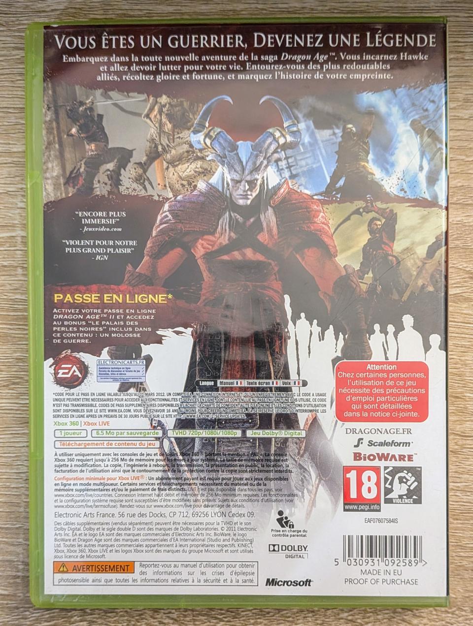 L3 - Dragon Age Ii Xbox 360 - EAN : 5030931092589 - ARTICLE OCCASION EN TRES BON ETAT GÉNÉRAL - BOITIER ORIGINAL XBOX 360 - JEUX JOUABLE EN FRANCAIS - LIVRAISON ULTRA RAPIDE EN COLIS SUIVI PROTÈGE - COVER FR - COMPLET