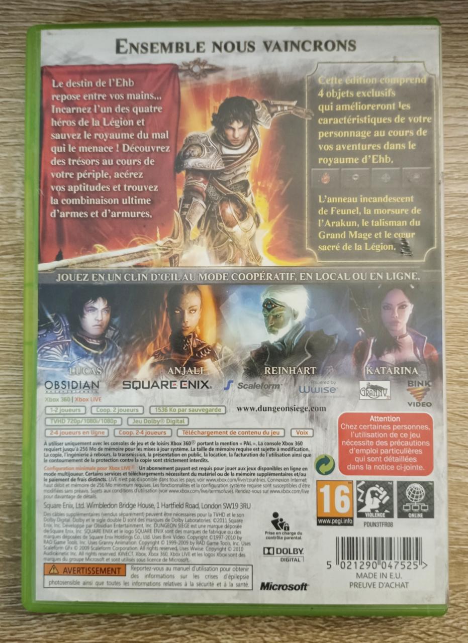 L3 - Dungeon Siege Iii Édition Limitée Xbox 360 - EAN : 5021290047525 - ARTICLE OCCASION EN TRES BON ETAT GÉNÉRAL - BOITIER ORIGINAL XBOX 360 - JEUX JOUABLE EN FRANCAIS - LIVRAISON ULTRA RAPIDE EN COLIS SUIVI PROTÈGE - COVER FR - COMPLET