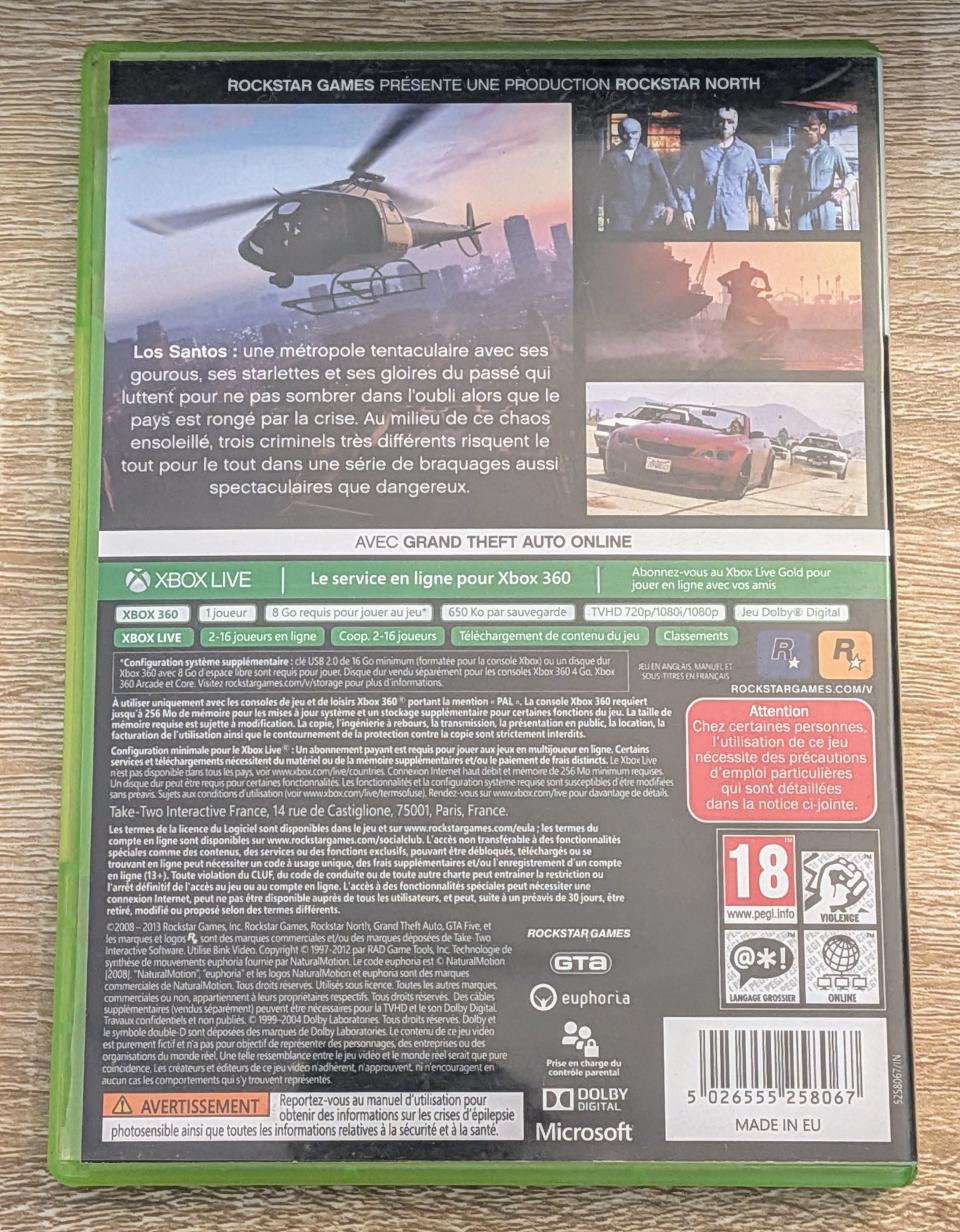 L2 - Grand Theft Auto V Xbox 360 GTA 5 / EAN : 5026555258067 - ARTICLE OCCASION EN TRES BON ETAT GENERAL - TEST MACHINE OK - PACK COMPLET JOUABLE EN FRANCAIS - LIVRAISON SUPER RAPIDE EN COLIS SUIVI PROTEGE - COVER FR
