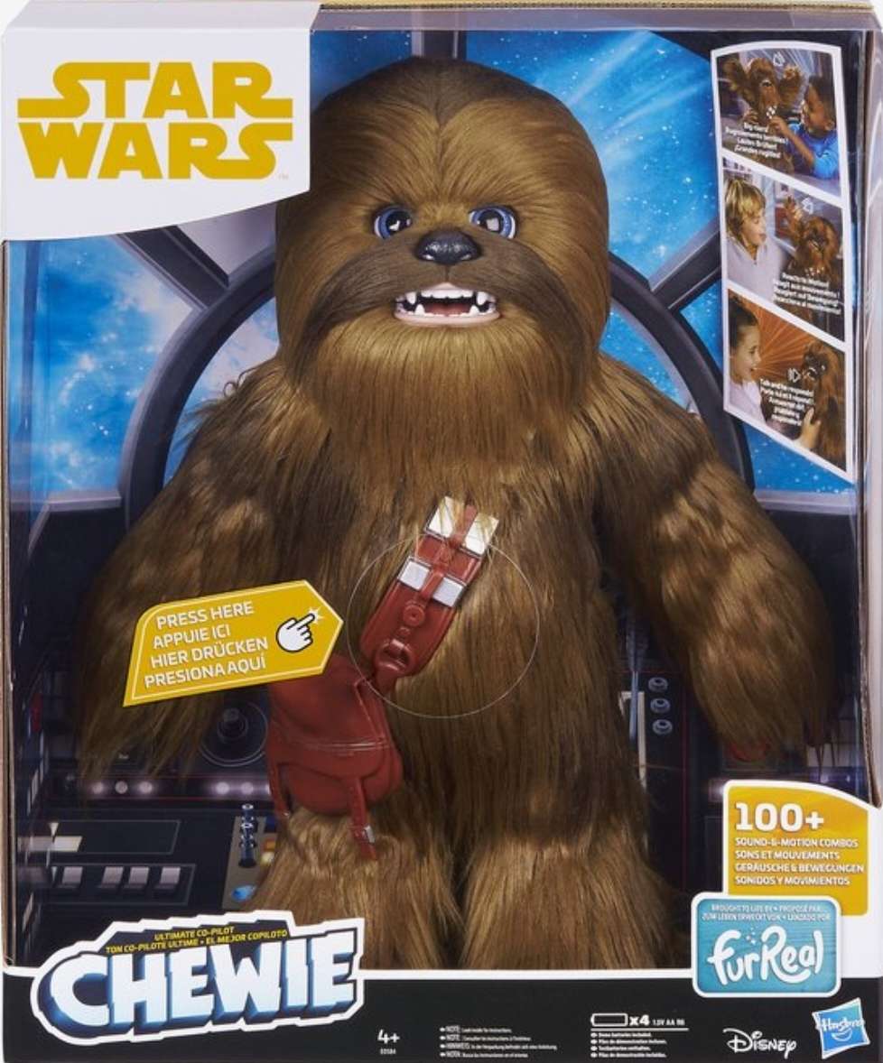 Cette superbe peluche interactive compte plus de 100 combinaisons de sons et de mouvements, répond en langue wookiee et réagit quand il bouge, parfois même de façon surprenante!