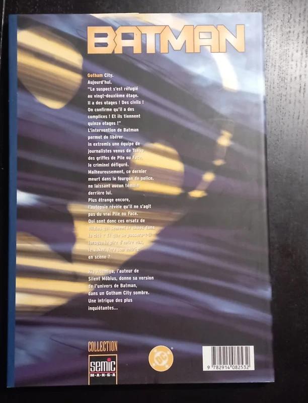 Gotham City. Aujourd'hui. " Le suspect s'est réfugié au vingt-deuxième étage. Il a des otages ! Des civils On confirme qu'il a des complices ! Et ils tiennent quinze otages ! " L'intervention de Batman permet de libérer in extremis une équipe de journalistes venus de Tokyo des griffes de Pile ou Face, le criminel défiguré. Malheureusement, ce dernier meurt dans le fourgon, ne laissant aucun témoin derrière lui. Plus étrange encore, l'autopsie révèle qu'il ne s'agit pas du vrai Pile ou Face. Qui sont ces ersatz de vilains qui sèment le chaos dans la cité ? Et que se passera-t-il lorsque le pire d'entre eux, le Joker, fera son entrée en scène. L'auteur de Silent Möbius, donne sa version de l'univers de Batman, dans un Gotham City sombre. Une intrigue des plus inquiétantes...