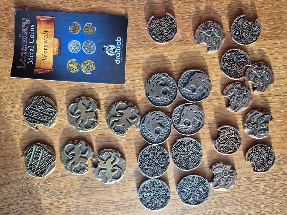 24 pièces épaisses en métal de haute qualité, 2,4 à 2,8 cm de diamètre. Thématique loup-garou