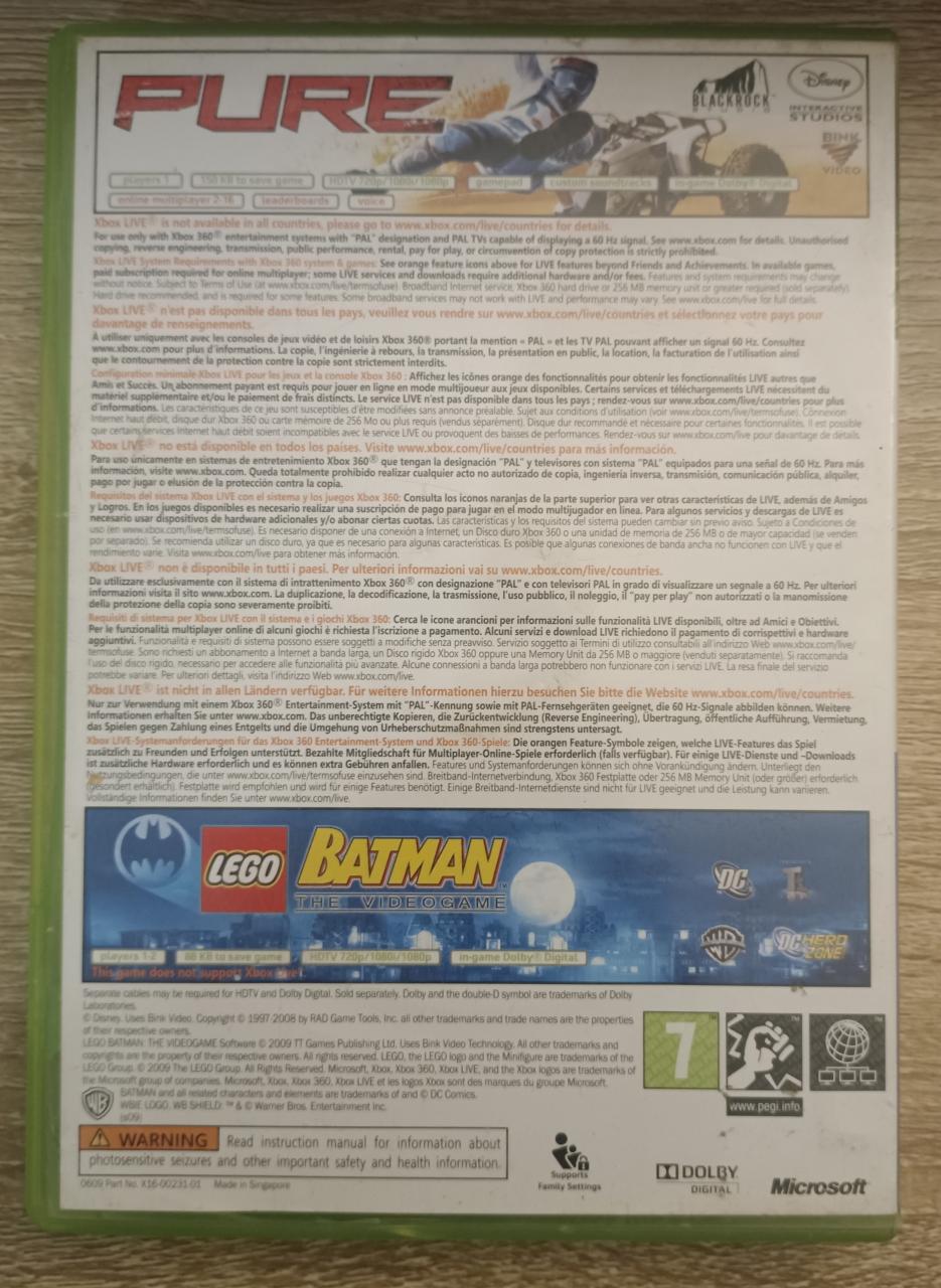 L2 - Pure Et Lego Batman - The Videogame Xbox 360 - EAN : / - ARTICLE OCCASION EN TRES BON ETAT GÉNÉRAL - BOITIER ORIGINAL XBOX 360 - JEUX JOUABLE EN FRANCAIS - LIVRAISON ULTRA RAPIDE EN COLIS SUIVI PROTÈGE - COVER FR - COMPLET CIB