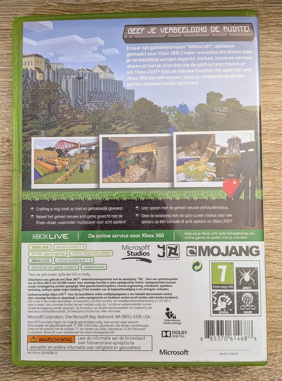 L1 - Minecraft Xbox 360 Edition - EAN : 885370614688 - ARTICLE OCCASION EN TRES BON ETAT GÉNÉRAL - BOITIER ORIGINAL XBOX 360 - JEUX JOUABLE EN FRANCAIS - LIVRAISON ULTRA RAPIDE EN COLIS SUIVI PROTÈGE - COVER E.U - COMPLET CID