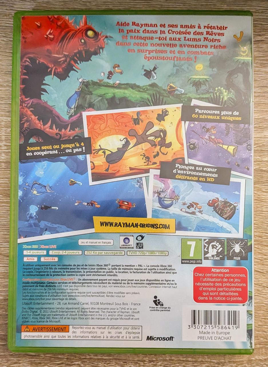 L1 - Rayman Origins Xbox 360 / EAN : 3307215586419 - ARTICLE D'OCCASION EN TRES BON ETAT GÉNÉRAL - BOITIER ORIGINAL - JEUX JOUABLE EN FRANCAIS - LIVRAISON ULTRA RAPIDE EN COLIS SUIVI PROTÈGE -COVER FR - COMPLET - CID