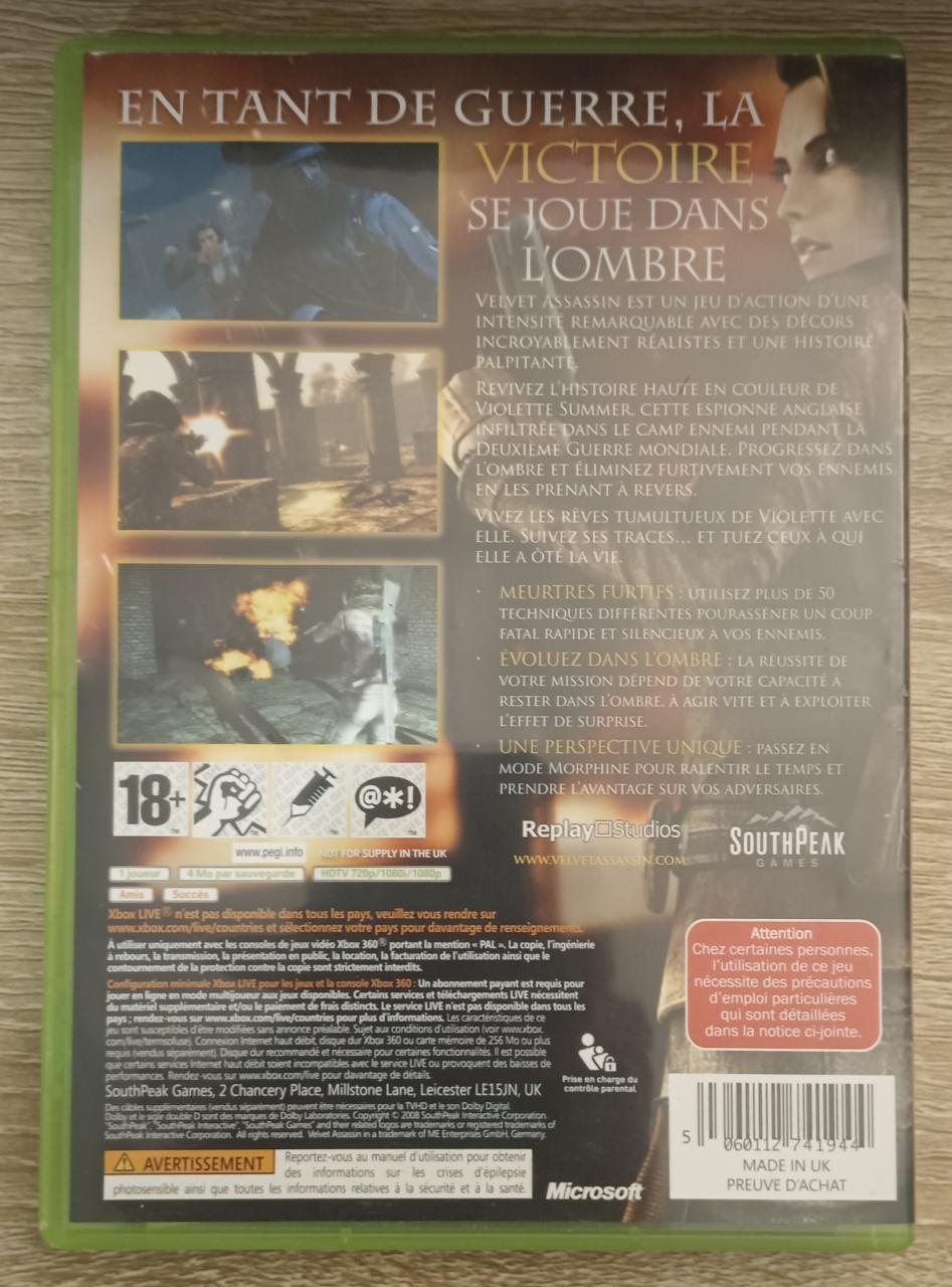 L1 - Velvet Assassin Xbox 360 / EAN : 5060112741944 - ARTICLE D'OCCASION EN TRES BON ETAT GÉNÉRAL - BOITIER ORIGINAL - JEUX JOUABLE EN FRANCAIS - LIVRAISON ULTRA RAPIDE EN COLIS SUIVI PROTÈGE -COVER FR - COMPLET - CIB