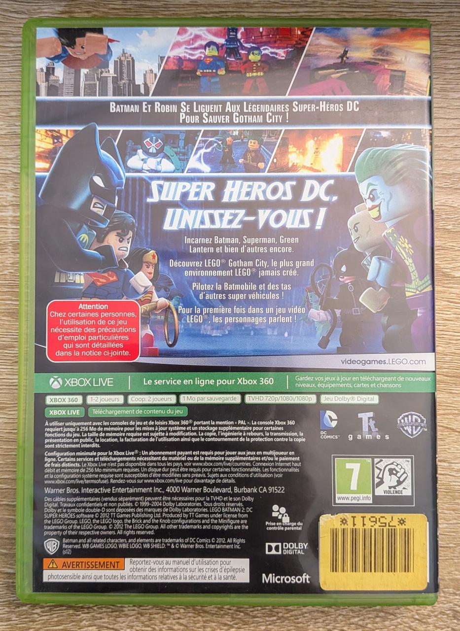 L1 - Lego Batman 2 - Dc Super Heroes Xbox 360 / EAN : 5051889243663 - ARTICLE D'OCCASION EN TRES BON ETAT GÉNÉRAL - BOITIER ORIGINAL - JEUX JOUABLE EN FRANCAIS - LIVRAISON ULTRA RAPIDE EN COLIS SUIVI PROTÈGE -COVER FR - COMPLET CID