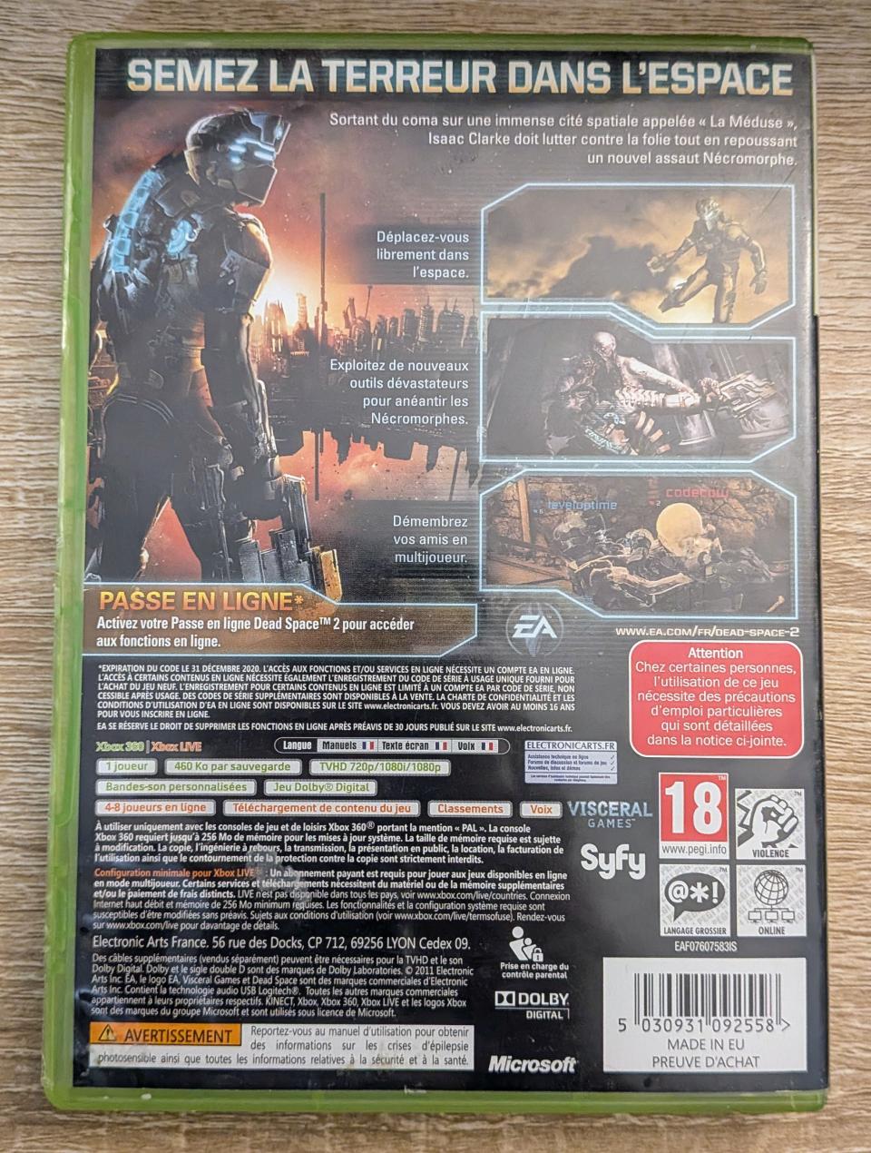 L2 - Dead Space 2 Xbox 360 - EAN : 5030931092558 - ARTICLE OCCASION EN TRES BON ETAT GÉNÉRAL - BOITIER ORIGINAL XBOX 360 - JEUX JOUABLE EN FRANCAIS - LIVRAISON ULTRA RAPIDE EN COLIS SUIVI PROTÈGE - COVER FR - COMPLET CID