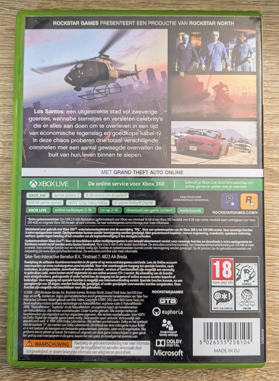 L3 - GTA V XBOX 360 Grand Theft Auto V - EAN : 5026555258104 - ARTICLE OCCASION EN TRES BON ETAT GÉNÉRAL - BOITIER ORIGINAL XBOX 360 - JEUX JOUABLE EN FRANCAIS - LIVRAISON ULTRA RAPIDE EN COLIS SUIVI PROTÈGE - COVER E.U - COMPLET CID