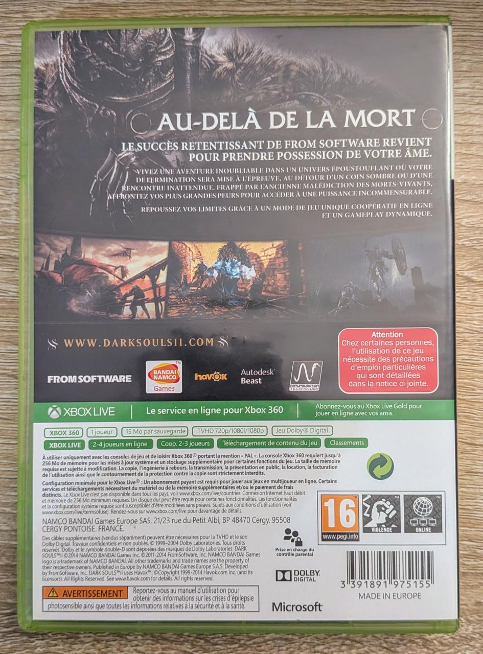 L1 - Dark Souls Ii Xbox 360 / EAN : 3391891975155 - ARTICLE D'OCCASION EN TRES BON ETAT GÉNÉRAL - BOITIER ORIGINAL - JEUX JOUABLE EN FRANCAIS - LIVRAISON ULTRA RAPIDE EN COLIS SUIVI PROTÈGE -COVER FR - COMPLET
