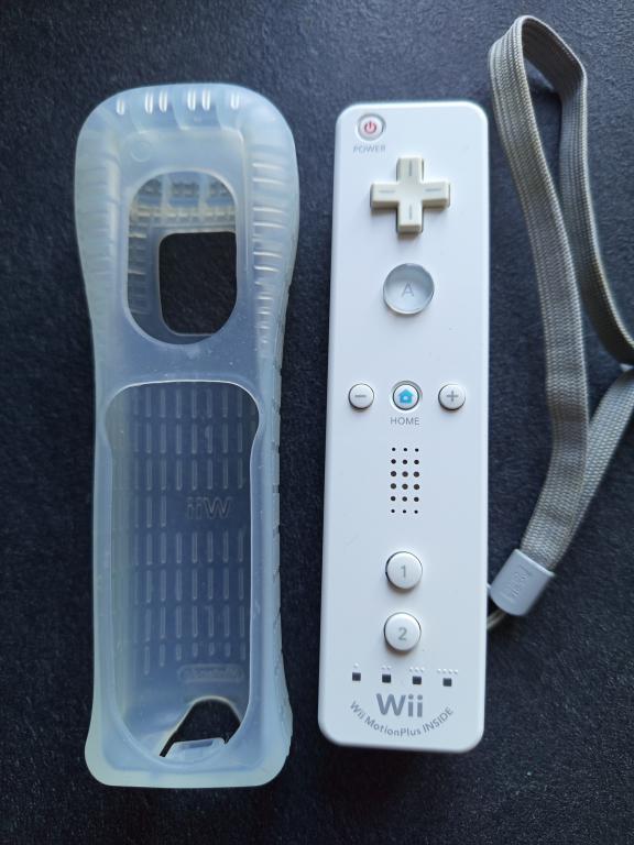 Wiimote vendue avec sa housse et sa dragonne officielles (plastique mordillé).