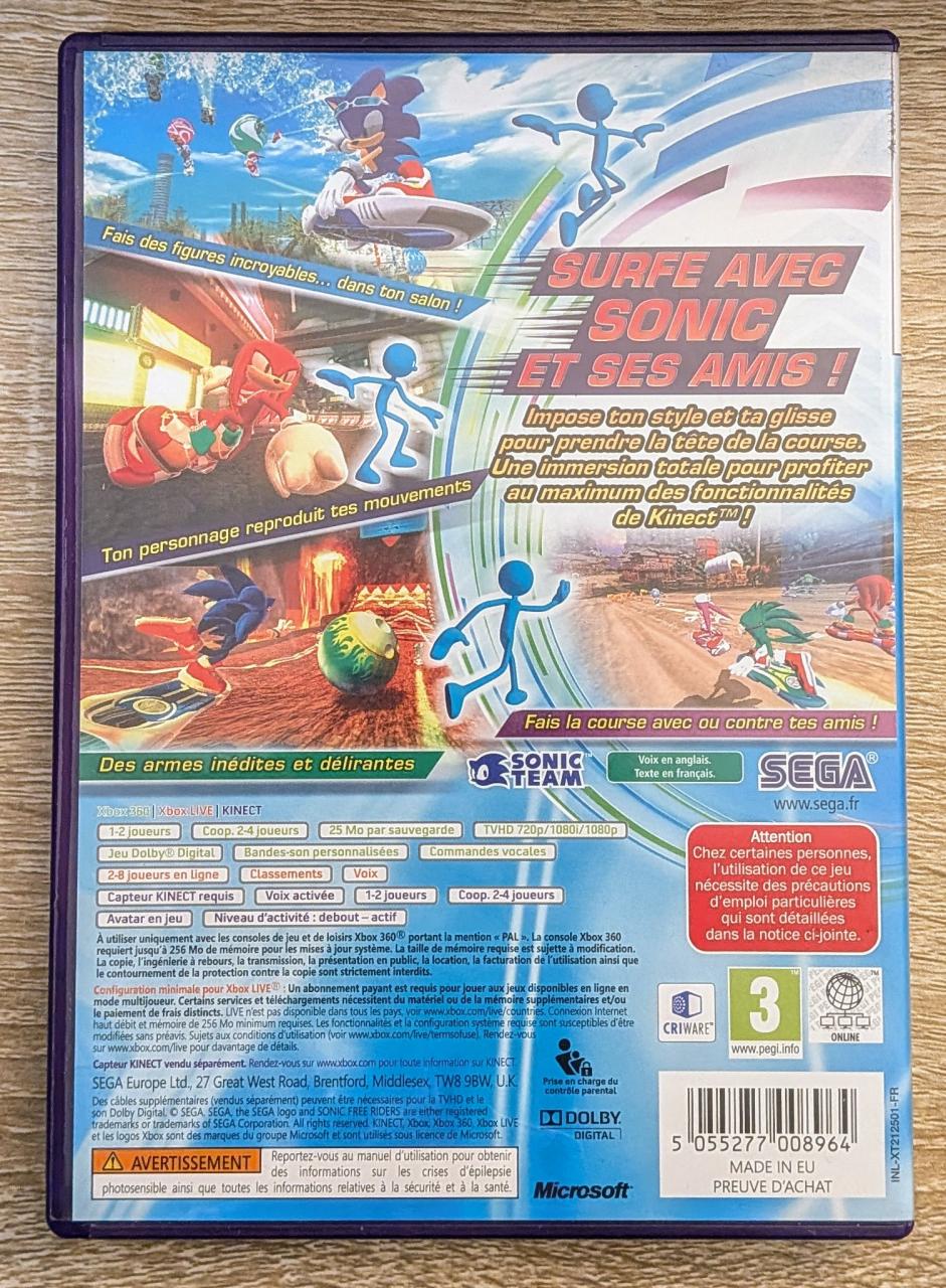 L1 - Sonic Free Riders Xbox 360 / EAN : 5055277008964 - ARTICLE D'OCCASION EN TRES BON ETAT GÉNÉRAL - BOITIER ORIGINAL - JEUX JOUABLE EN FRANCAIS - LIVRAISON ULTRA RAPIDE EN COLIS SUIVI PROTÈGE -COVER FR - COMPLET CIB