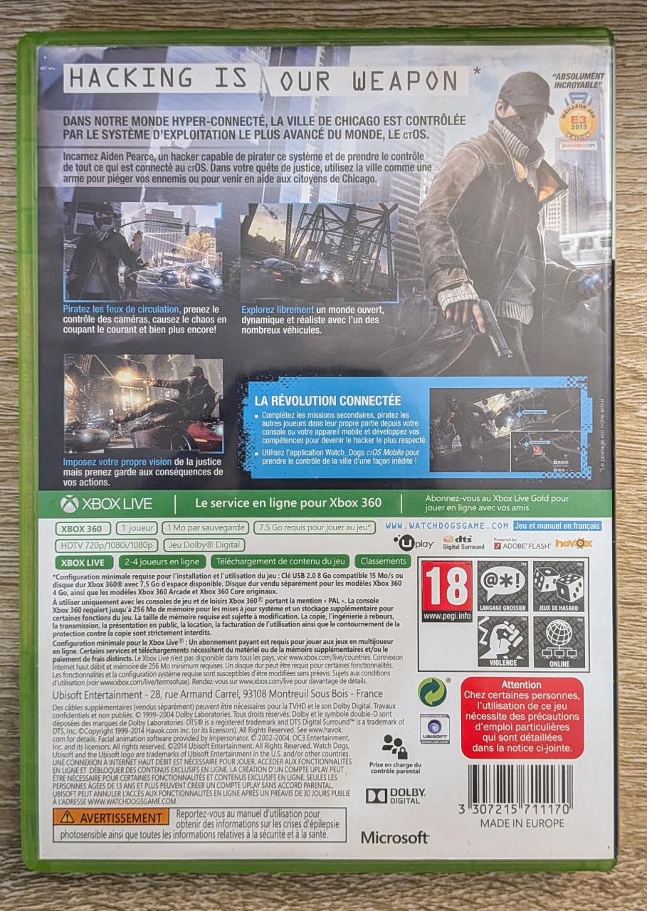 L3 - Watch Dogs Xbox 360 - EAN : 3307215711170 - ARTICLE OCCASION EN TRES BON ETAT GÉNÉRAL - BOITIER ORIGINAL XBOX 360 - JEUX JOUABLE EN FRANCAIS - LIVRAISON ULTRA RAPIDE EN COLIS SUIVI PROTÈGE - COVER FR - COMPLET CIB