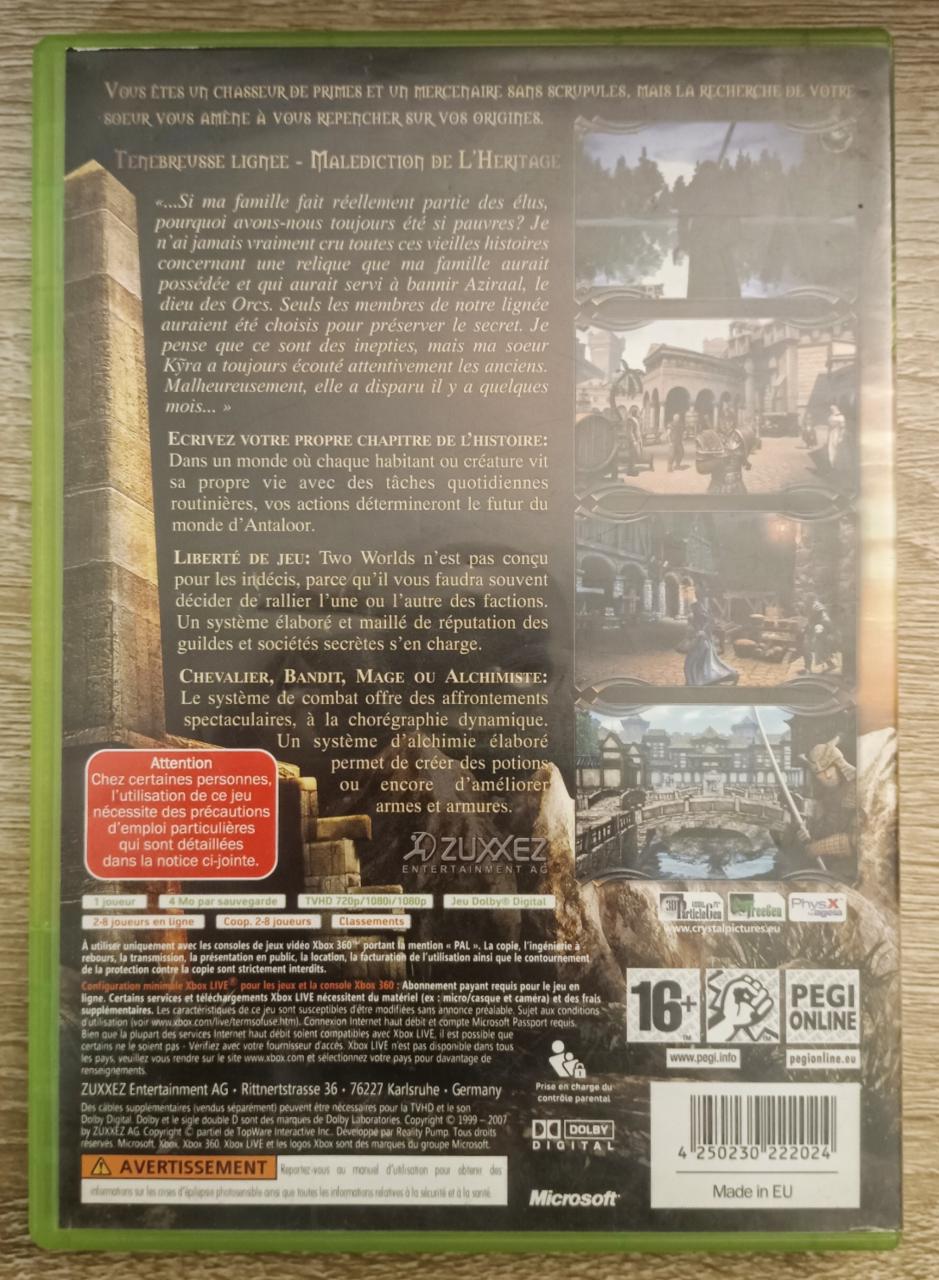 L3 - Two Worlds Xbox 360 - EAN : 4250230222024 - ARTICLE OCCASION EN TRES BON ETAT GÉNÉRAL - BOITIER ORIGINAL XBOX 360 - JEUX JOUABLE EN FRANCAIS - LIVRAISON ULTRA RAPIDE EN COLIS SUIVI PROTÈGE - COVER FR
