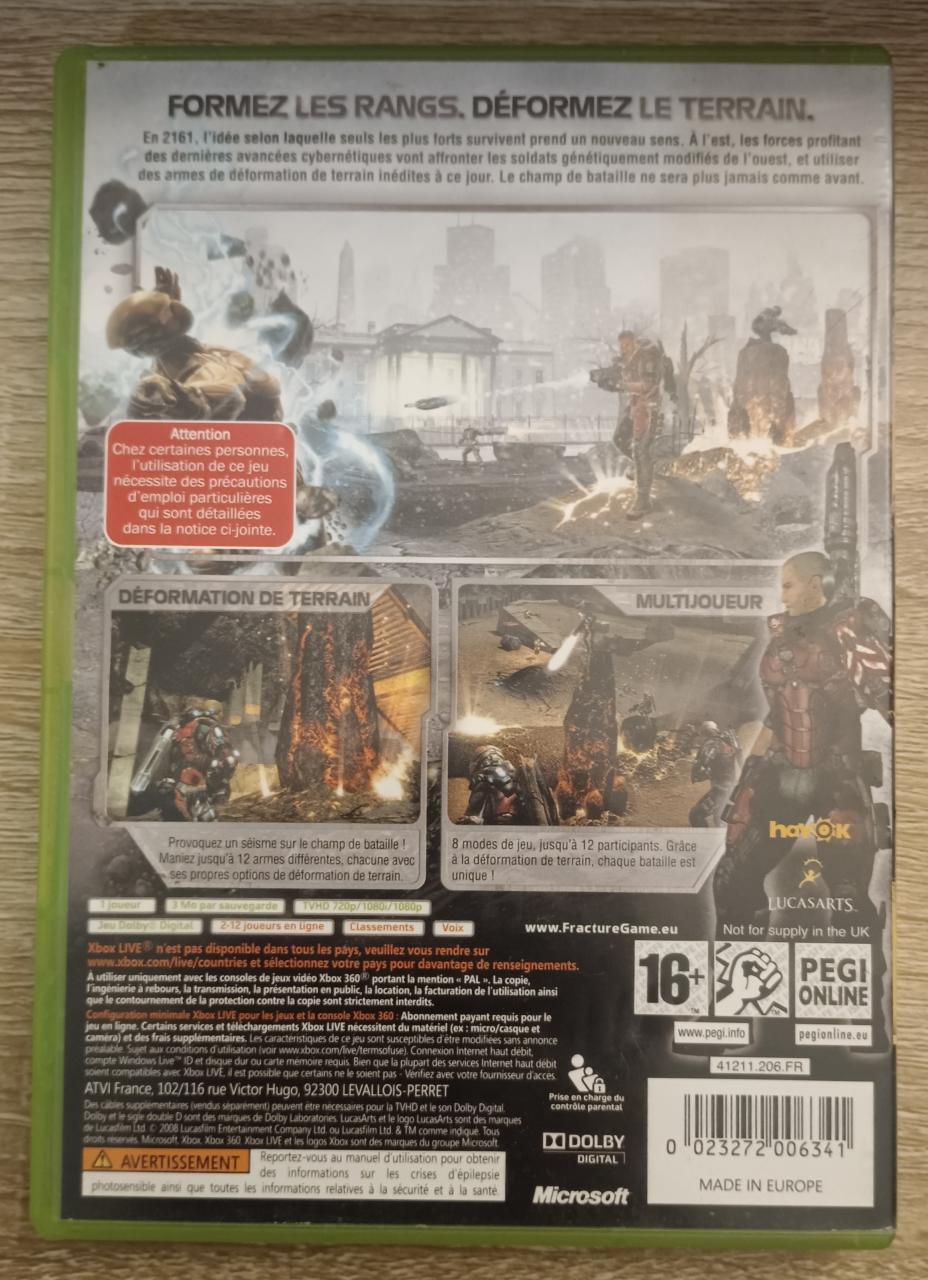 L3 - Fracture Xbox 360 - EAN : 023272006341 - ARTICLE OCCASION EN TRES BON ETAT GÉNÉRAL - BOITIER ORIGINAL XBOX 360 - JEUX JOUABLE EN FRANCAIS - LIVRAISON ULTRA RAPIDE EN COLIS SUIVI PROTÈGE - COVER FR - SANS NOTICE + JEUX OFFERT