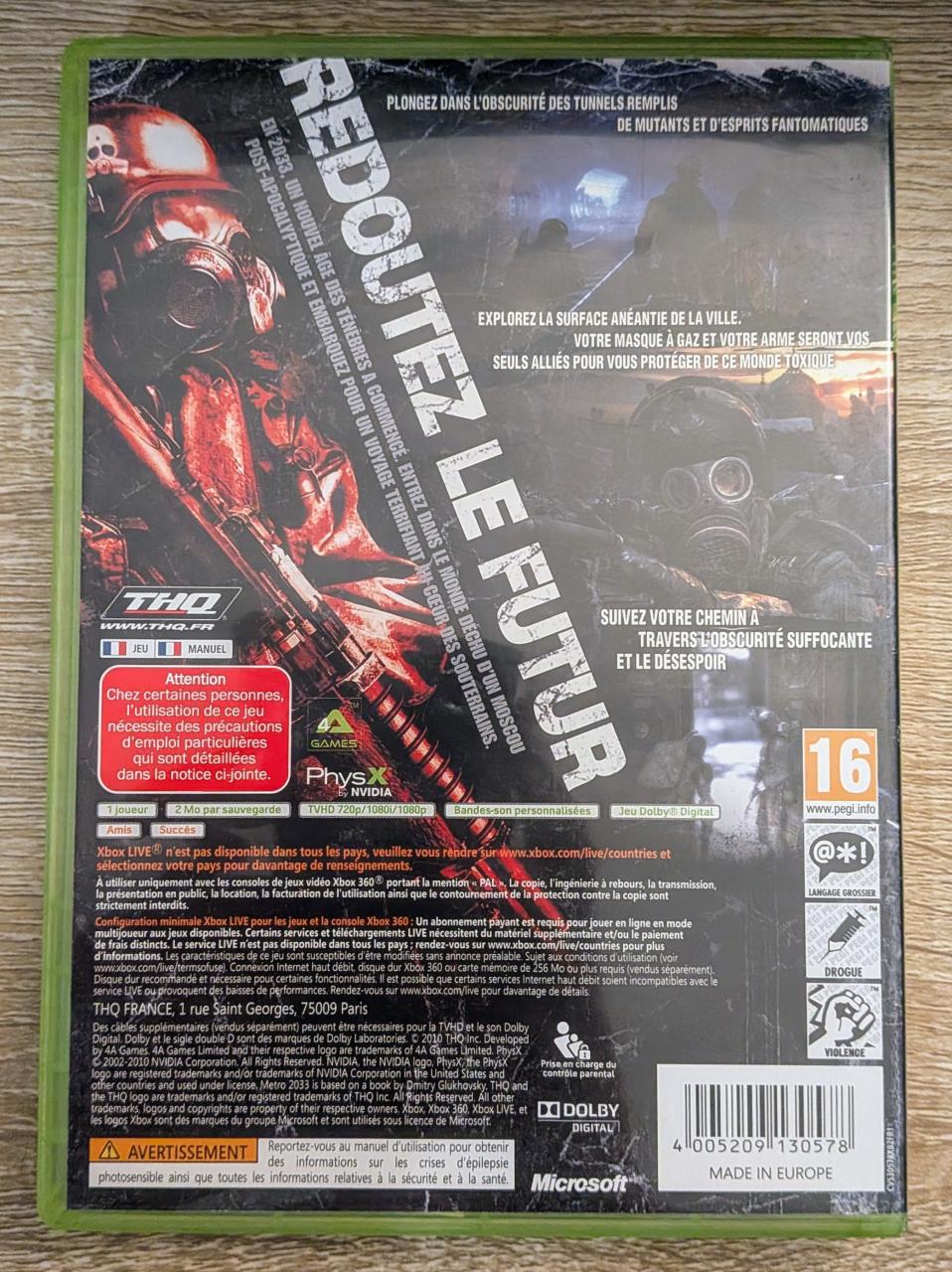 L2 - Metro 2033 Xbox 360 - EAN : 4005209130578 - ARTICLE OCCASION EN TRES BON ETAT GÉNÉRAL - BOITIER ORIGINAL XBOX 360 - JEUX JOUABLE EN FRANCAIS - LIVRAISON ULTRA RAPIDE EN COLIS SUIVI PROTÈGE - COVER E.U - COMPLET CIB