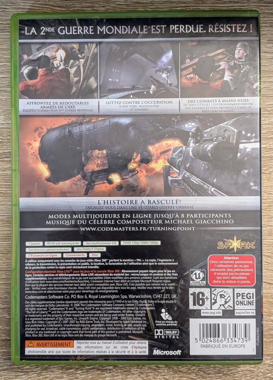 L3 - Turning Point - Fall Of Liberty Xbox 360 - EAN : 5024866334739- ARTICLE OCCASION EN TRES BON ETAT GÉNÉRAL - BOITIER ORIGINAL XBOX 360 - JEUX JOUABLE EN FRANCAIS - LIVRAISON ULTRA RAPIDE EN COLIS SUIVI PROTÈGE - COVER FR - COMPLET CIB