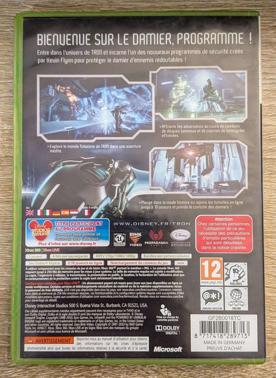 L2 - Tron Evolution Xbox 360 / EAN : 8717418289713 - ARTICLE OCCASION EN TRES BON ETAT GENERAL - TEST MACHINE OK - PACK COMPLET JOUABLE EN FRANCAIS - LIVRAISON SUPER RAPIDE EN COLIS SUIVI PROTEGE - COMPLET CIB