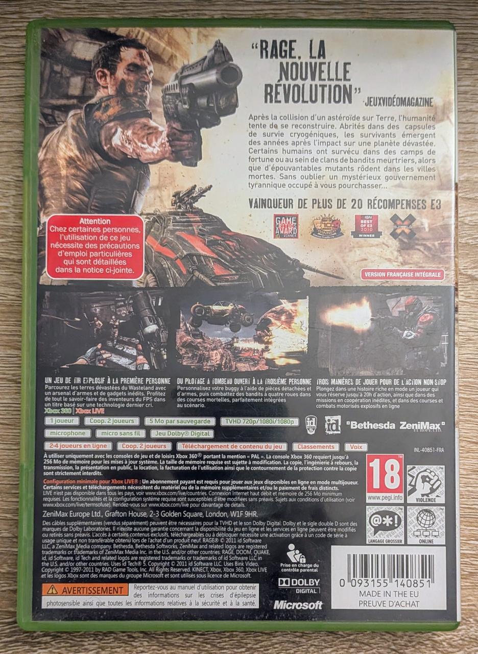 L2 - Rage Xbox 360 - EAN : 0093155140851 - ARTICLE OCCASION EN TRES BON ETAT GÉNÉRAL - BOITIER ORIGINAL XBOX 360 - JEUX JOUABLE EN FRANCAIS - LIVRAISON ULTRA RAPIDE EN COLIS SUIVI PROTÈGE - COVER FR - COMPLET CIB