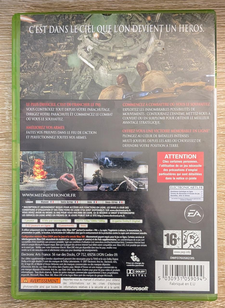 L1 - Medal Of Honor Airborne Xbox 360 / EAN : 5030931059094 - ARTICLE OCCASION EN TRES BON ETAT GENERAL - TEST MACHINE OK - PACK COMPLET JOUABLE EN FRANCAIS - LIVRAISON SUPER RAPIDE EN COLIS SUIVI PROTEGE - COVER FR - COMPLET CIB