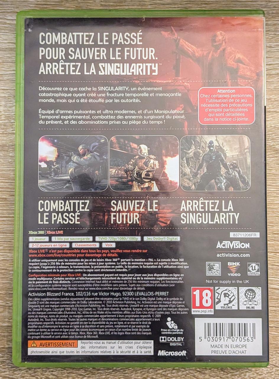 L2 - Singularity Xbox 360 / EAN : 5030917070563 - ARTICLE OCCASION EN TRES BON ETAT GENERAL - TEST MACHINE OK - PACK COMPLET JOUABLE EN FRANCAIS - LIVRAISON SUPER RAPIDE EN COLIS SUIVI PROTEGE - COVER FR - COMPLET CIB