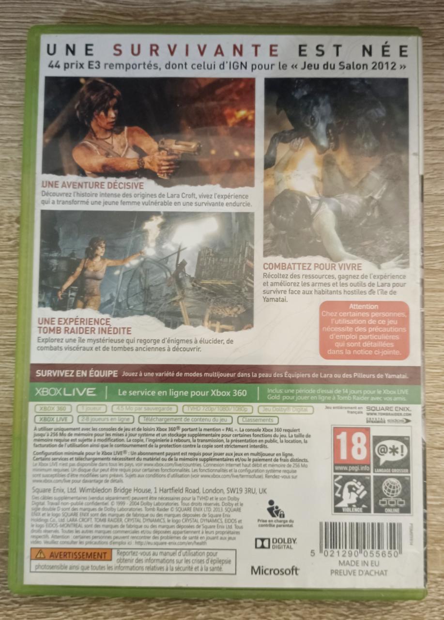 L2 - Tomb Raider - Combat Strike Edition Xbox 360 - EAN : 5021290055650 - ARTICLE OCCASION EN TRES BON ETAT GÉNÉRAL - BOITIER ORIGINAL - JEUX JOUABLE EN FRANCAIS - LIVRAISON ULTRA RAPIDE EN COLIS SUIVI PROTÈGE - COVER FR - COMPLET CIB