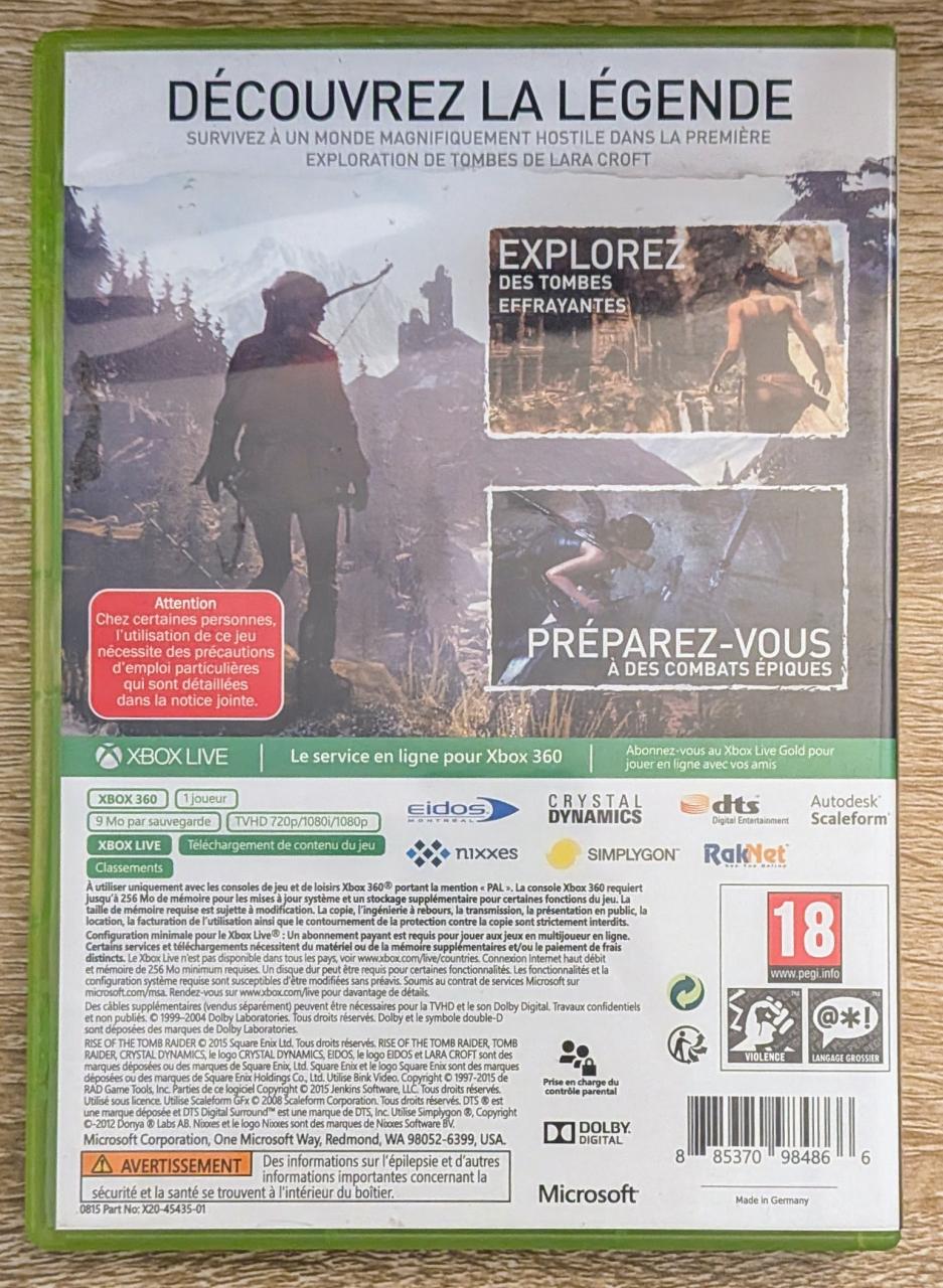 L3 - Rise Of The Tomb Raider Xbox 360 - EAN : 885370984866 - ARTICLE OCCASION EN TRES BON ETAT GÉNÉRAL - BOITIER ORIGINAL XBOX 360 - JEUX JOUABLE EN FRANCAIS - LIVRAISON ULTRA RAPIDE EN COLIS SUIVI PROTÈGE - COVER FR