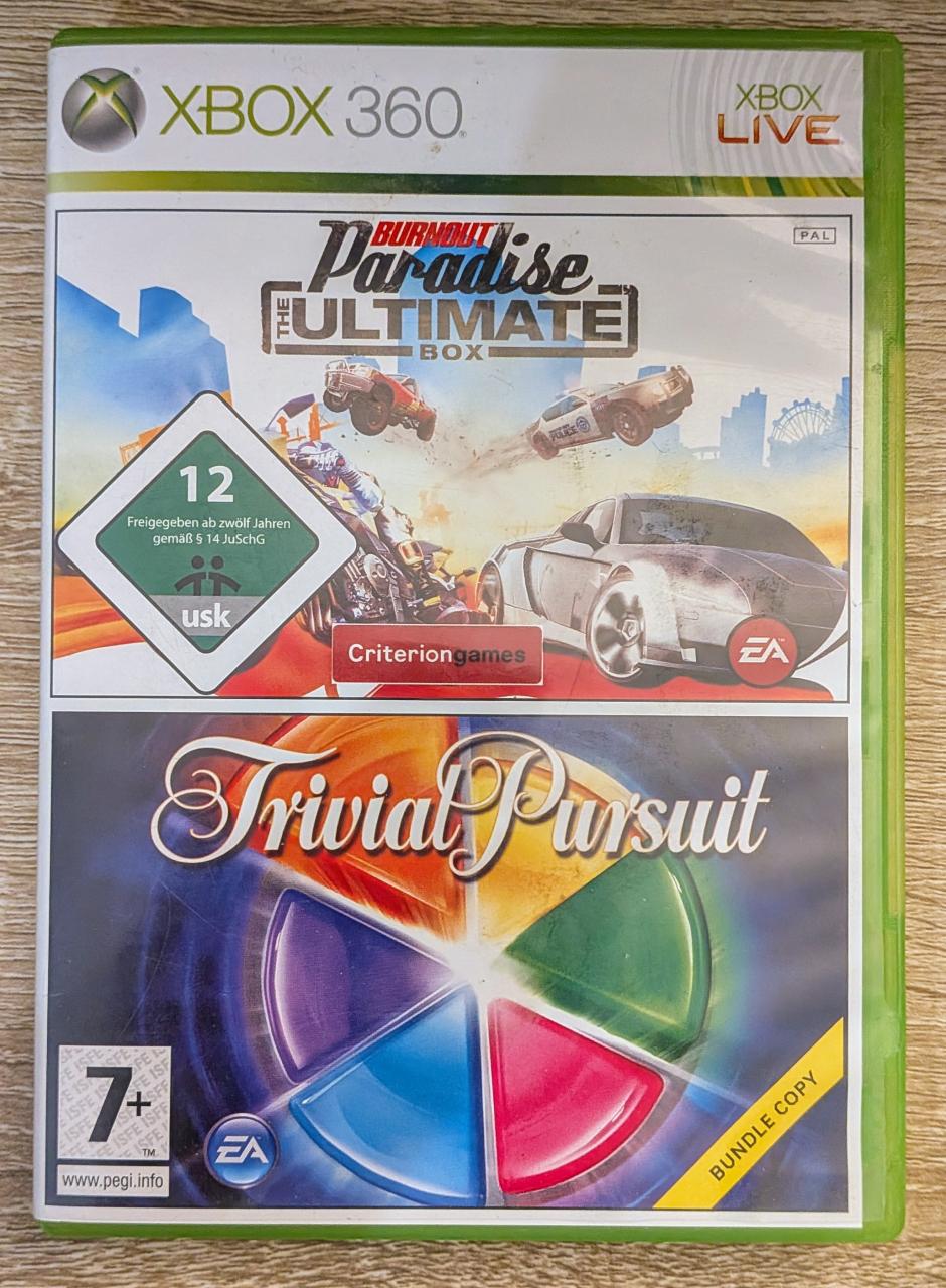 L1 - Double Pack - Burnout Paradise Ultimate Box - Trivial Pursuit Xbox 360 - EAN : 5060176361928 - ARTICLE OCCASION EN TRES BON ETAT GÉNÉRAL - BOITIER ORIGINAL XBOX 360 - JEUX JOUABLE EN FRANCAIS - LIVRAISON ULTRA RAPIDE EN COLIS SUIVI PROTÈGE - COVER FR - COMPLET CIB