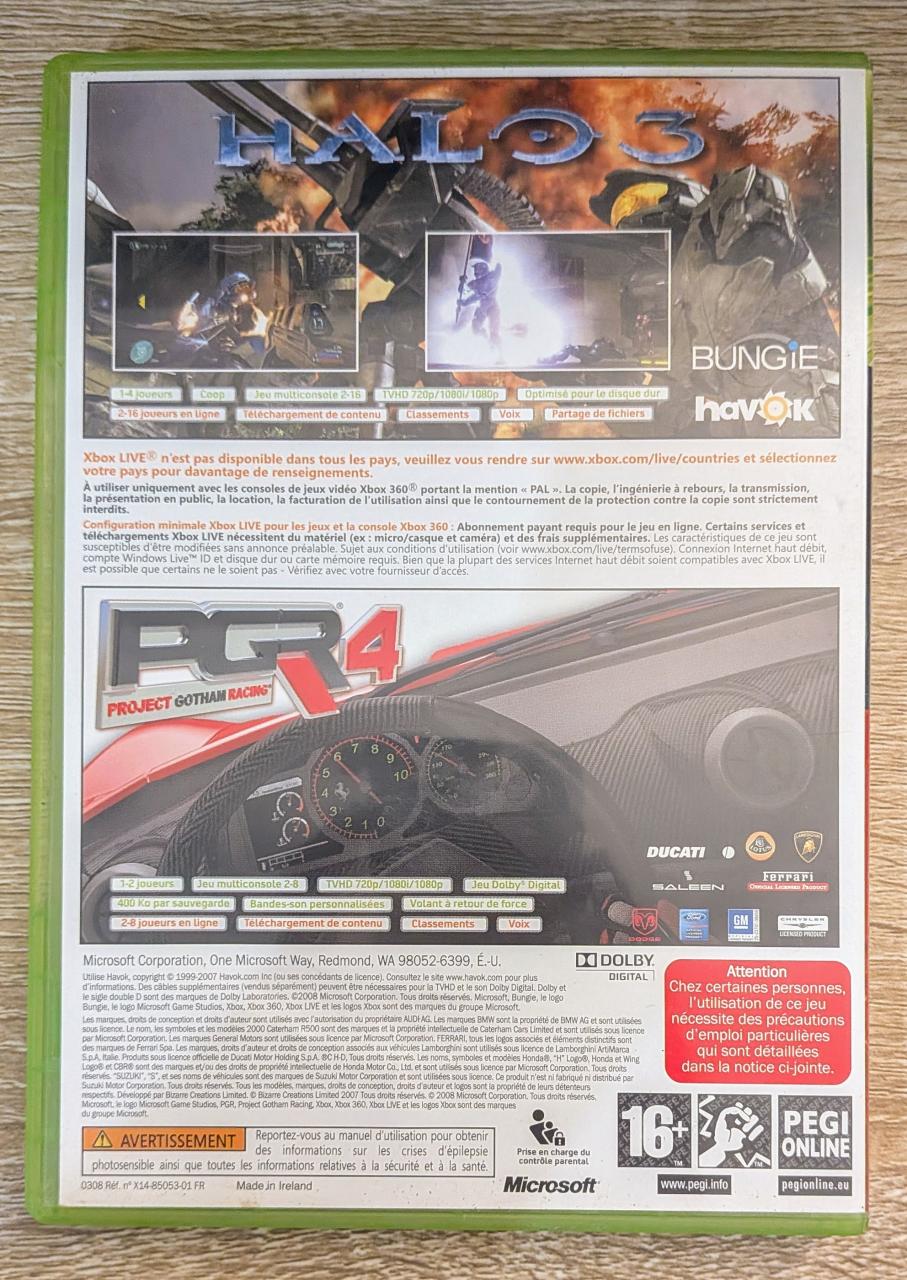 L1 - Pack Halo 3 + Pgr 4 Xbox 360 / EAN : 5030917085833 - ARTICLE OCCASION EN TRES BON ETAT GENERAL - TEST MACHINE OK - PACK COMPLET JOUABLE EN FRANCAIS - LIVRAISON SUPER RAPIDE EN COLIS SUIVI PROTEGE - COVER FR - COMPLET