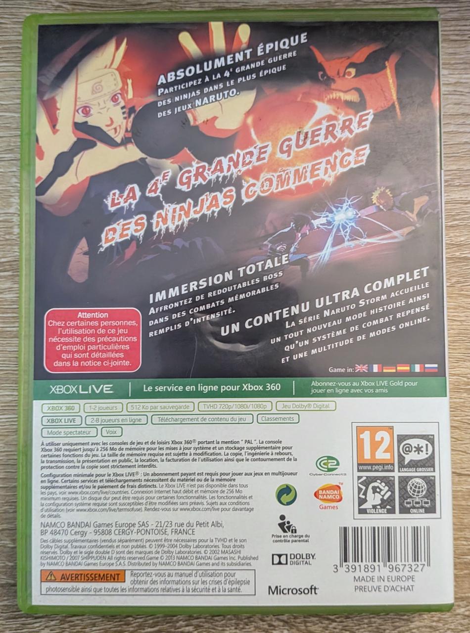 L1 - Naruto Shippuden Ultimate Ninja Storm 3 Xbox 360 / EAN : 3391891967327 - ARTICLE OCCASION EN TRES BON ETAT GENERAL - TEST MACHINE OK - PACK COMPLET JOUABLE EN FRANCAIS - LIVRAISON SUPER RAPIDE EN COLIS SUIVI PROTEGE - COVER FR - COMPLET CIB