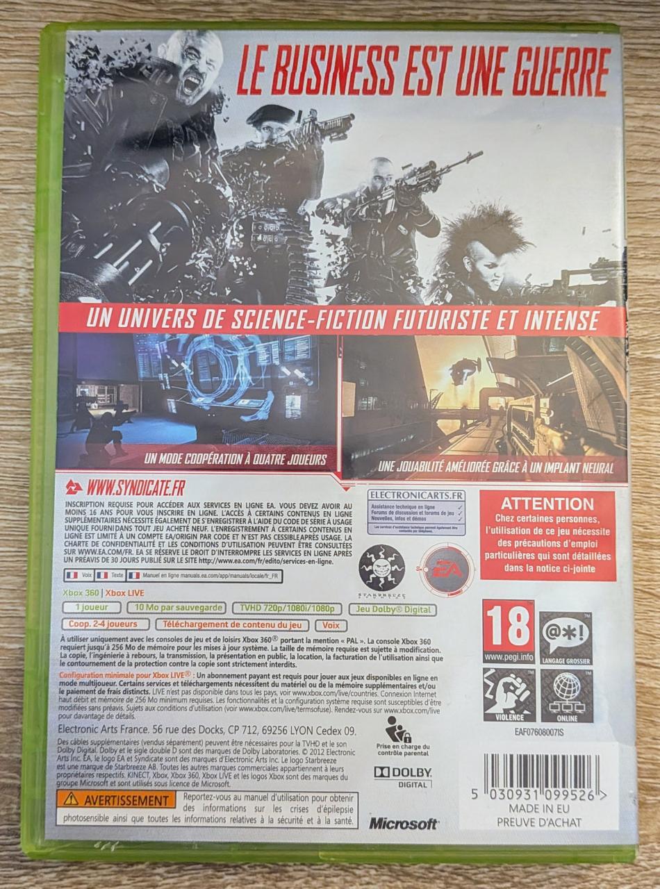 L2 - Syndicate Xbox 360 - EAN : 5030931099526 - ARTICLE OCCASION EN TRES BON ETAT GÉNÉRAL - BOITIER ORIGINAL XBOX 360 - JEUX JOUABLE EN FRANCAIS - LIVRAISON ULTRA RAPIDE EN COLIS SUIVI PROTÈGE - COVER FR - COMPLET CIB