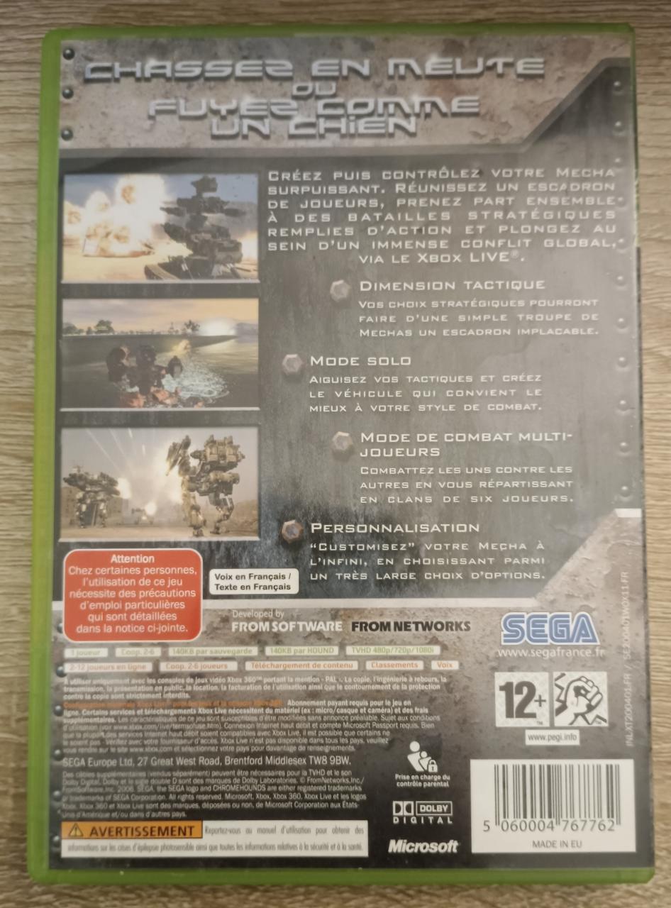 L3 - Chrome Hounds Xbox 360 - EAN : 5060004767762 - ARTICLE OCCASION EN TRES BON ETAT GÉNÉRAL - BOITIER ORIGINAL XBOX 360 - JEUX JOUABLE EN FRANCAIS - LIVRAISON ULTRA RAPIDE EN COLIS SUIVI PROTÈGE - COVER FR - COMPLET CIB