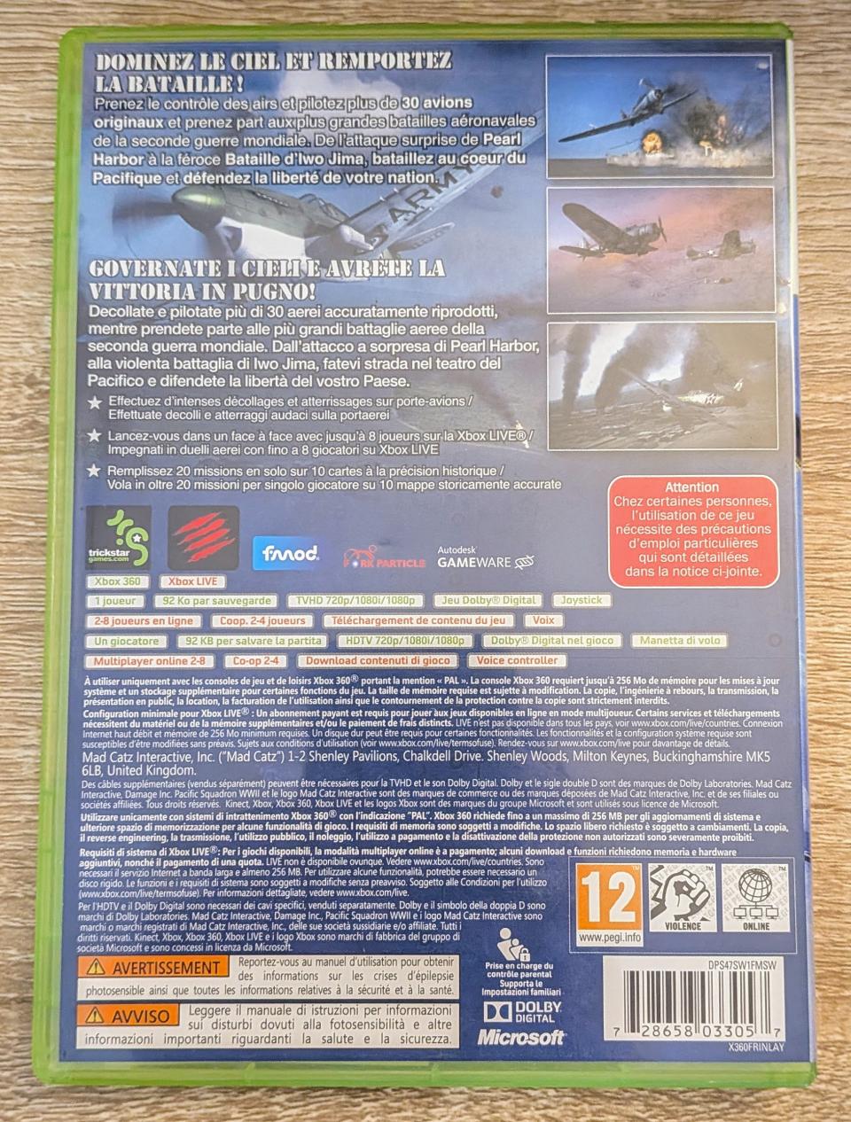 L3 - Damage Inc. Pacific Squadron Wwii Xbox 360 / EAN : 728658033057 - ARTICLE OCCASION EN TRES BON ETAT GENERAL - TEST MACHINE OK - PACK COMPLET JOUABLE EN FRANCAIS - LIVRAISON SUPER RAPIDE EN COLIS SUIVI PROTEGE - COVER FR - COMPLET CIB - RARE ET TRES RECHERCHE PRIX NON NEGOCIABLE