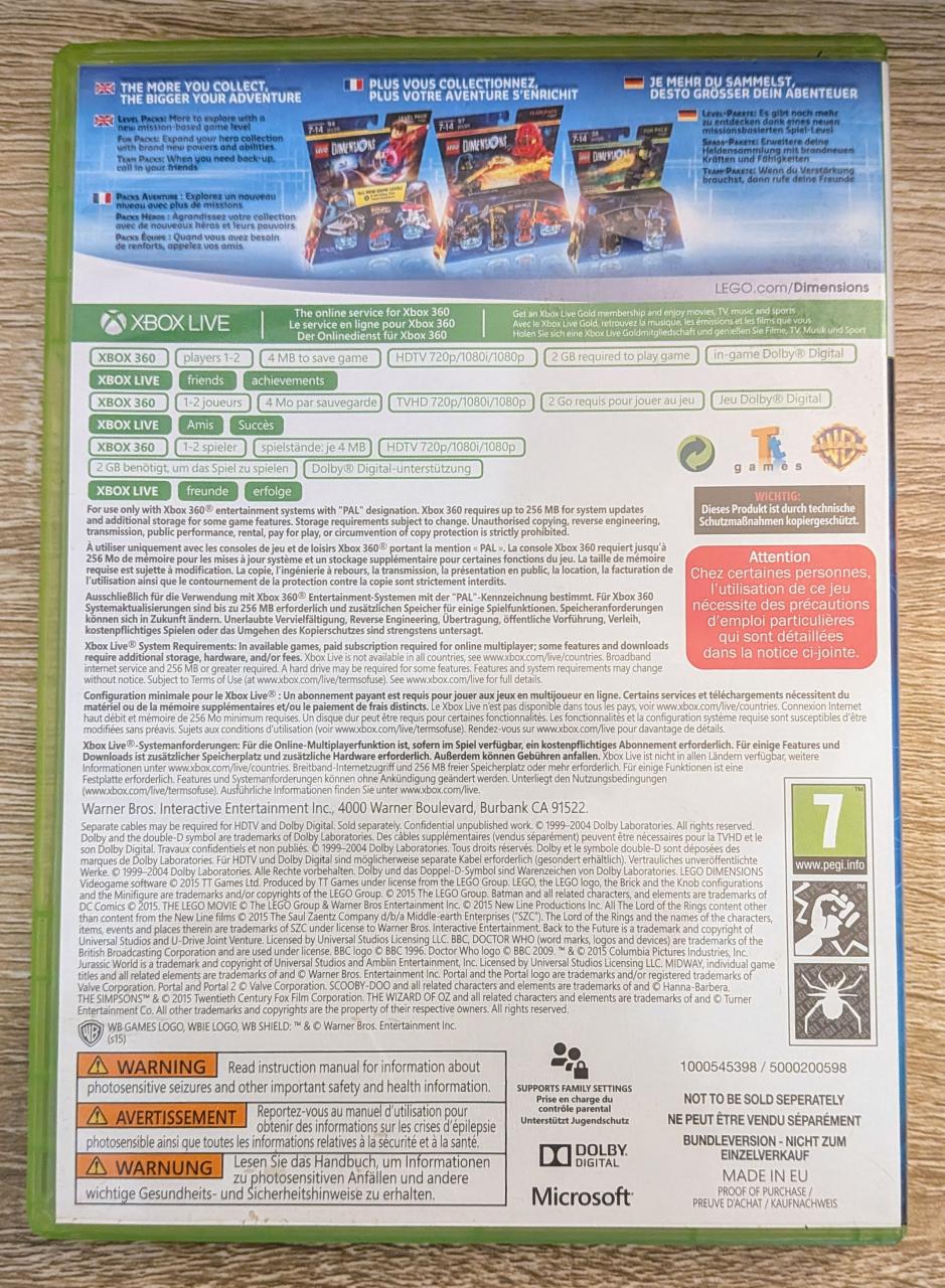 L1 - Lego Dimensions Xbox 360 - EAN : 5051892187312- ARTICLE OCCASION EN TRES BON ETAT GÉNÉRAL - BOITIER ORIGINAL XBOX 360 - JEUX JOUABLE EN FRANCAIS - LIVRAISON ULTRA RAPIDE EN COLIS SUIVI PROTÈGE - COVER FR - COMPLET CIB