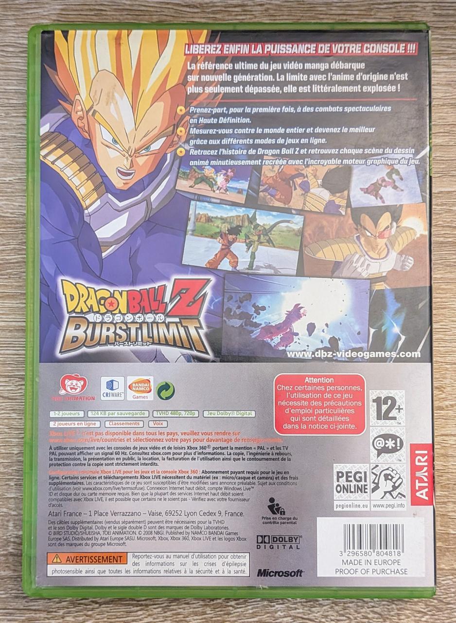 L3 - Dragon Ball Z - Burst Limit Xbox 360 - EAN : 3296580804818 - ARTICLE OCCASION EN TRES BON ETAT GÉNÉRAL - BOITIER ORIGINAL XBOX 360 - JEUX JOUABLE EN FRANCAIS - LIVRAISON ULTRA RAPIDE EN COLIS SUIVI PROTÈGE - COVER FR - COMPLET CIB - PRIX NON NEGOCIABLE MERCI DE RESPECTER CELA SVP