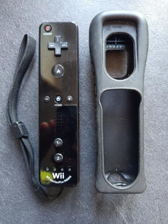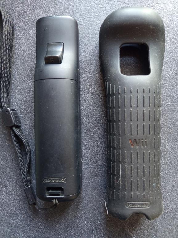 Wiimote vendue avec sa dragonne et sa housse en silicone officielles.