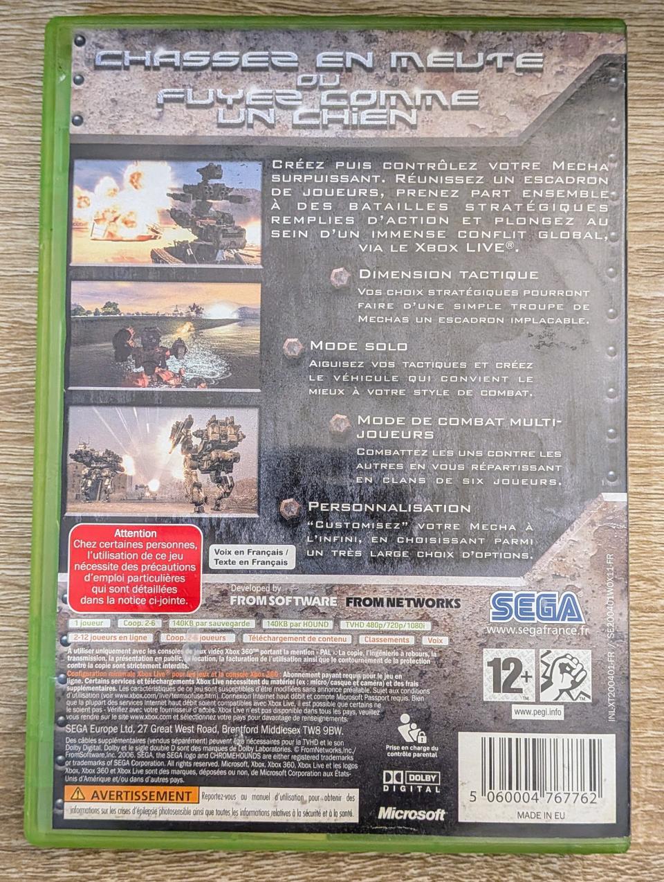 L3 - Chrome Hounds Xbox 360 - EAN : 5060004767762 - ARTICLE OCCASION EN TRES BON ETAT GÉNÉRAL - BOITIER ORIGINAL XBOX 360 - JEUX JOUABLE EN FRANCAIS - LIVRAISON ULTRA RAPIDE EN COLIS SUIVI PROTÈGE - COVER FR - COMPLET CIB