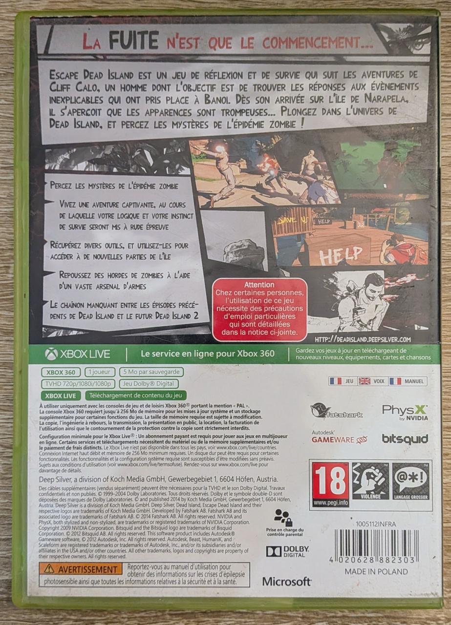 L2 - Escape - Dead Island Xbox 360 - EAN : 4020628882303 - ARTICLE OCCASION EN TRES BON ETAT GÉNÉRAL - BOITIER ORIGINAL XBOX 360 - JEUX JOUABLE EN FRANCAIS - LIVRAISON ULTRA RAPIDE EN COLIS SUIVI PROTÈGE - COVER FR - COMPLET CIB