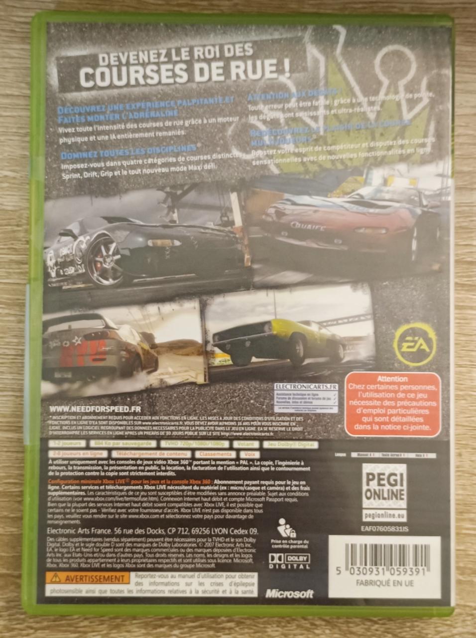 L1 - Need For Speed - Prostreet Xbox 360 - EAN : 5030931059391 - ARTICLE OCCASION EN TRES BON ETAT GÉNÉRAL - BOITIER ORIGINAL XBOX 360 - JEUX JOUABLE EN FRANCAIS - LIVRAISON ULTRA RAPIDE EN COLIS SUIVI PROTÈGE - COVER FR - COMPLET CIB