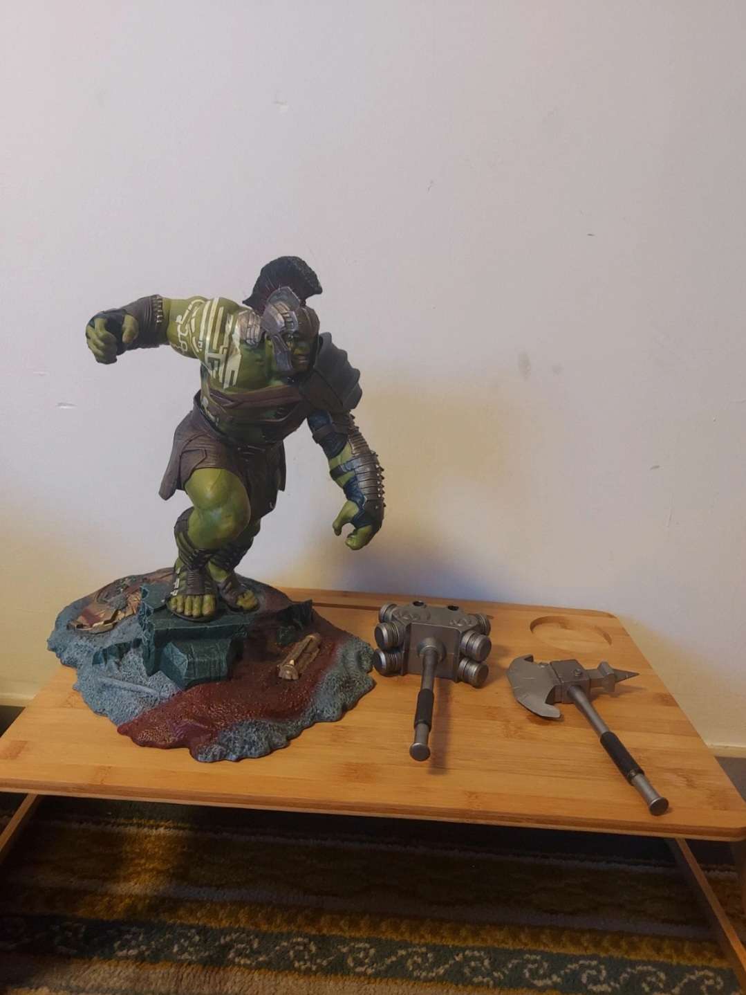 Avis aux fans de Marvel et aux collectionneurs ! Je vends cette superbe figurine de Hulk en armure de gladiateur, directement inspirée du film Thor: Ragnarok.