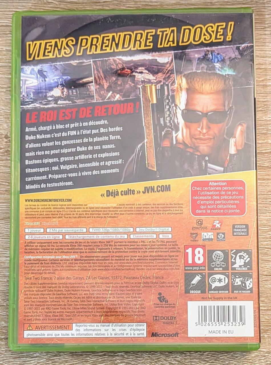 L2 - Duke Nukem Forever Xbox 360 - EAN : 5026555253239 - ARTICLE OCCASION EN TRES BON ETAT GÉNÉRAL - BOITIER ORIGINAL XBOX 360 - JEUX JOUABLE EN FRANCAIS - LIVRAISON ULTRA RAPIDE EN COLIS SUIVI PROTÈGE - COVER FR - COMPLET CIB