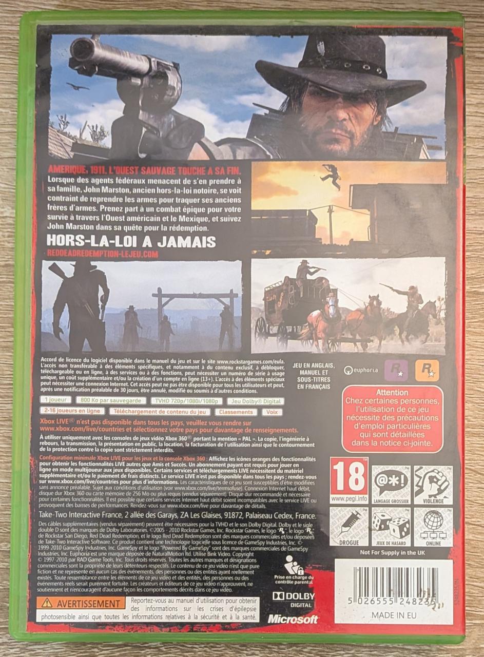 L1 - Red Dead Redemption Xbox 360 / EAN : 5026555248235 - ARTICLE OCCASION EN TRES BON ETAT GENERAL - TEST MACHINE OK - PACK COMPLET - LIVRAISON SUPER RAPIDE EN COLIS SUIVI PROTEGE - COVER FR - CIB
