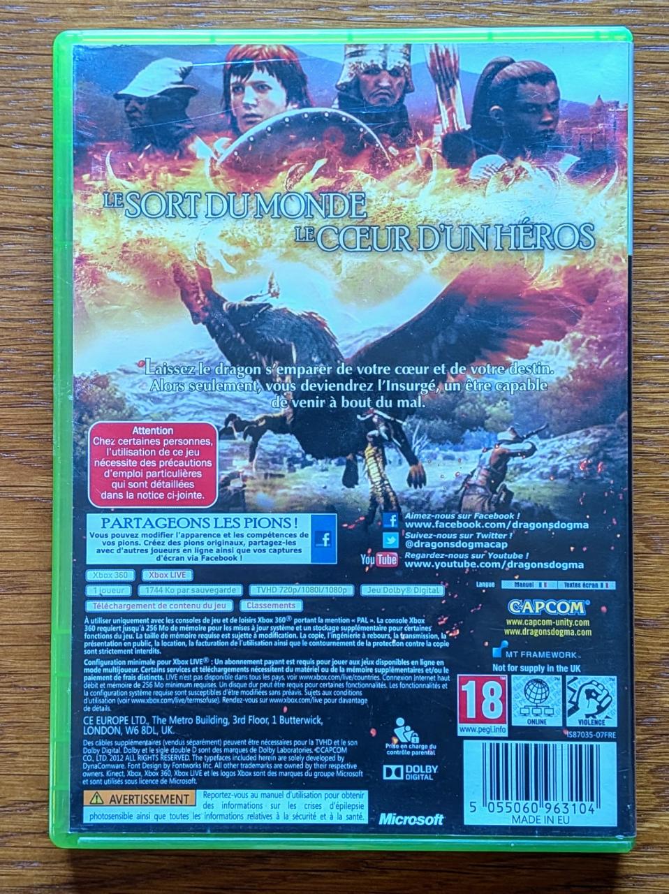 L1 - Dragon's Dogma Xbox 360 / EAN : 5055060963104 - ARTICLE OCCASION EN TRES BON ETAT GENERAL - TEST MACHINE OK - PACK COMPLET JOUABLE EN FRANCAIS - LIVRAISON SUPER RAPIDE EN COLIS SUIVI PROTEGE - COVER FR - COMPLET CIB