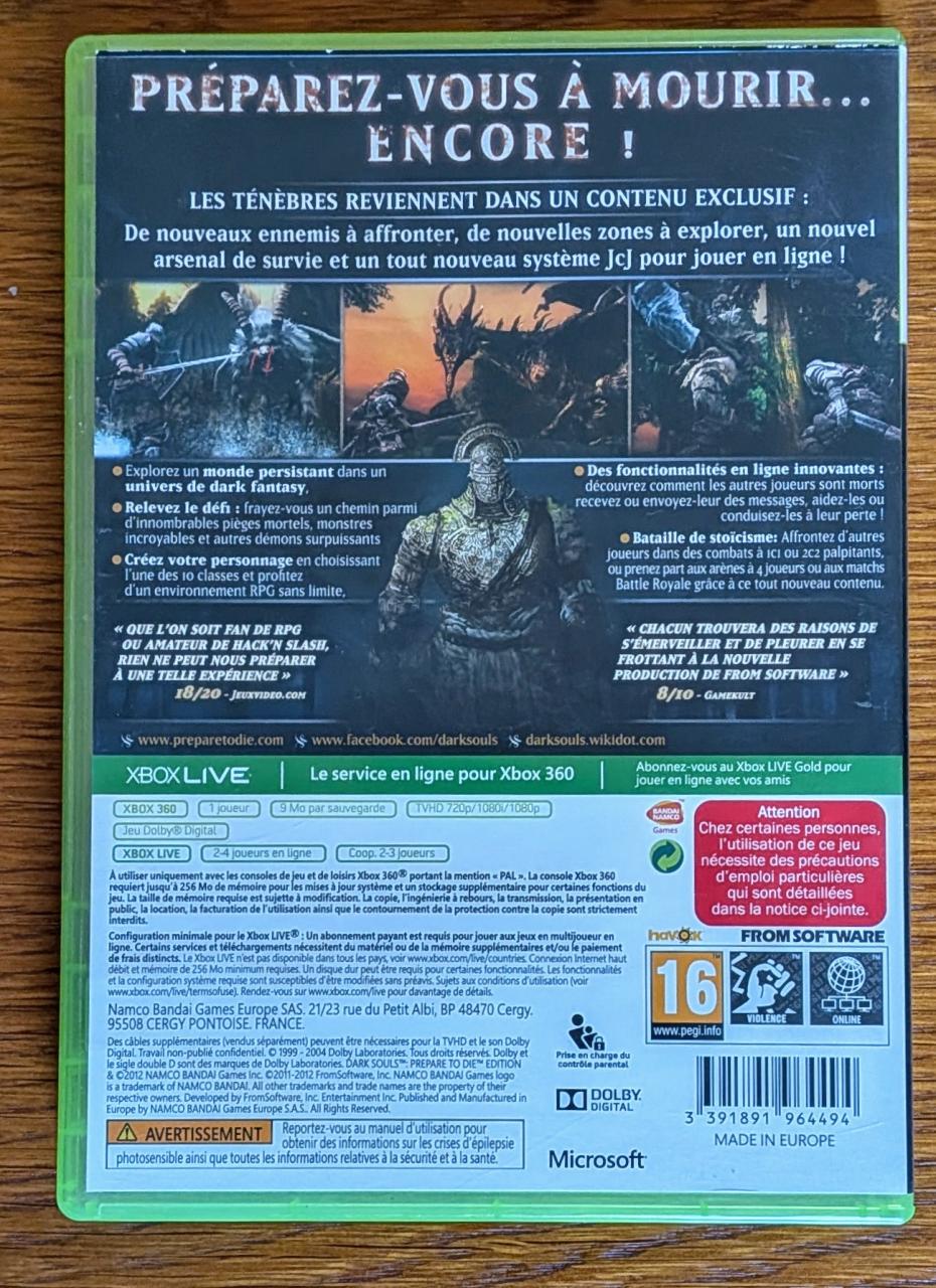 L3 - Dark Souls - Prepare To Die Edition Xbox 360 - EAN : 3391891964494 - ARTICLE OCCASION EN TRES BON ETAT GÉNÉRAL - BOITIER ORIGINAL XBOX 360 - JEUX JOUABLE EN FRANCAIS - LIVRAISON ULTRA RAPIDE EN COLIS SUIVI PROTÈGE - COVER FR