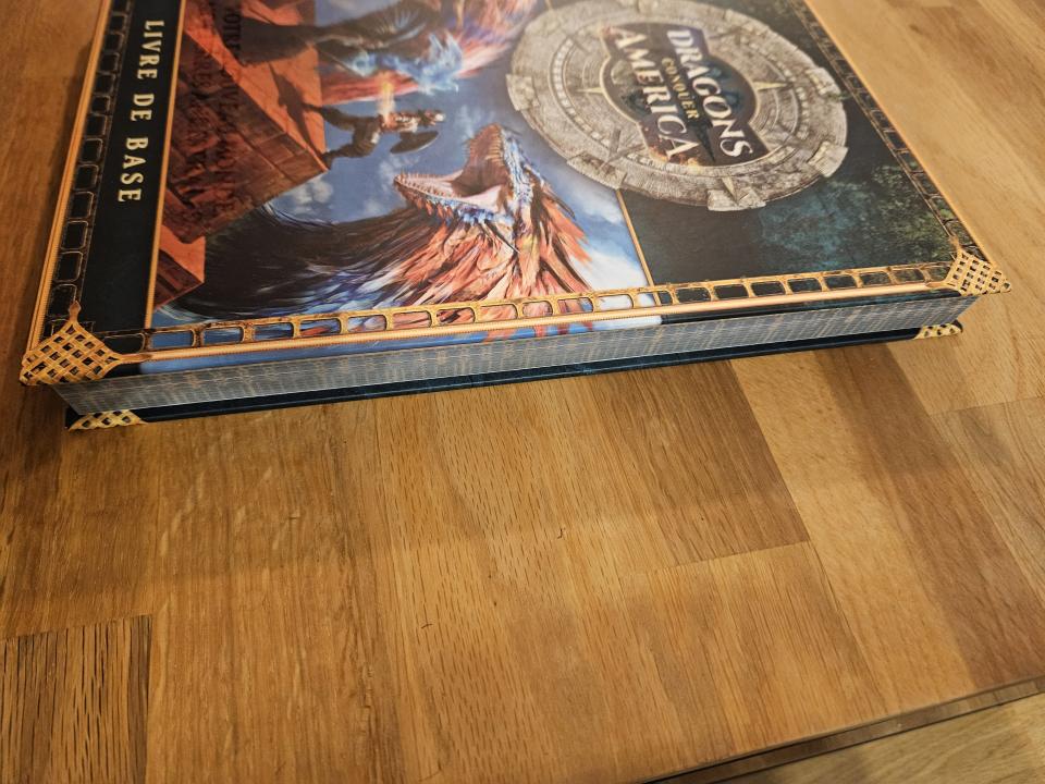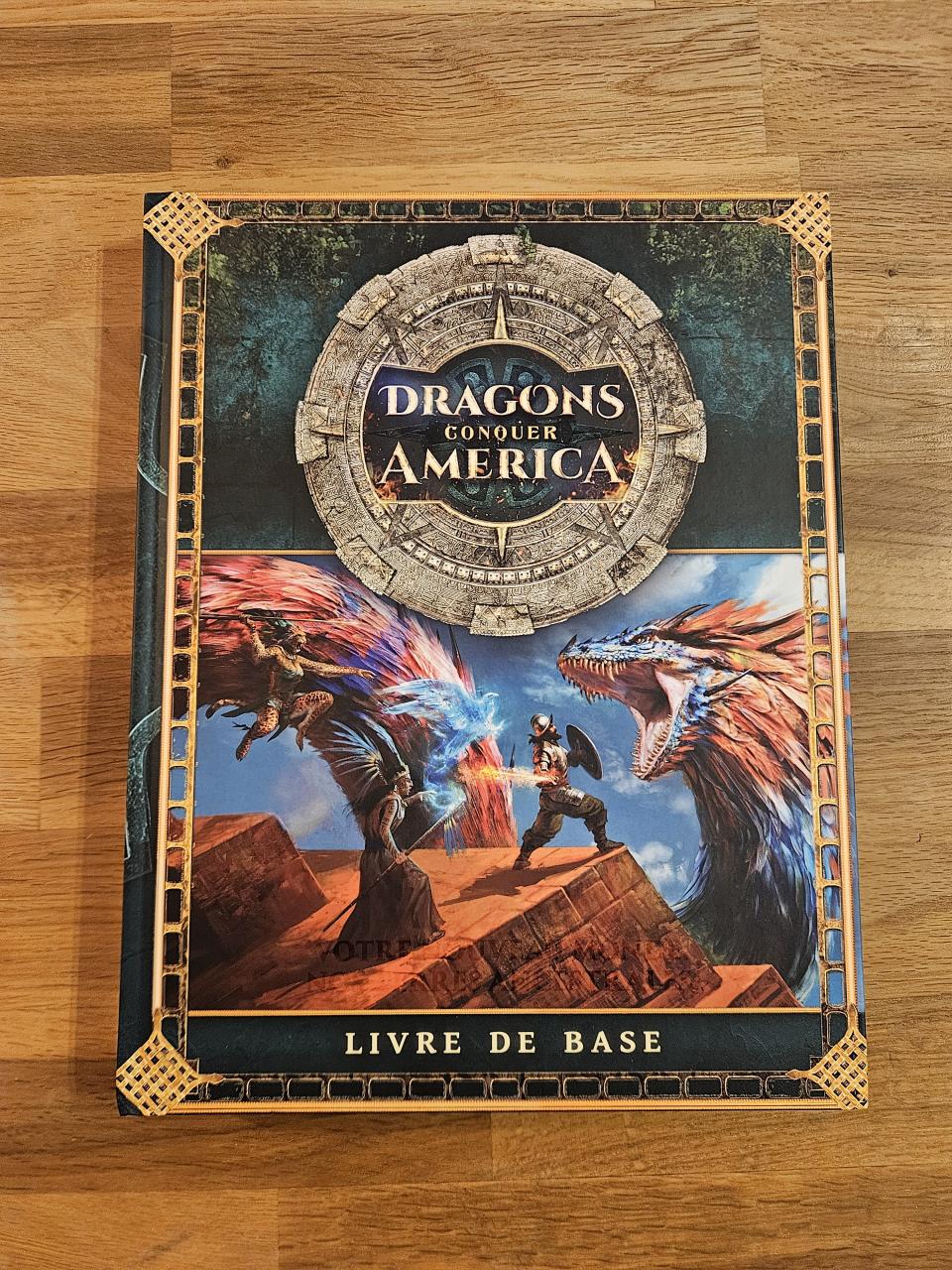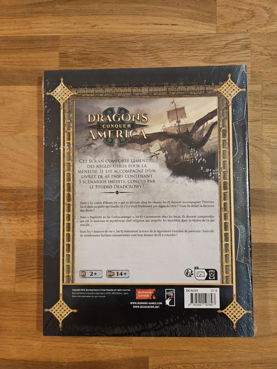 Dragons conquer America. Le livre de base, l'écran avec son livret, et 7 jeux de cartes spécifiques. (le jeu se jouant avec des cartes) Le tout en état neuf.