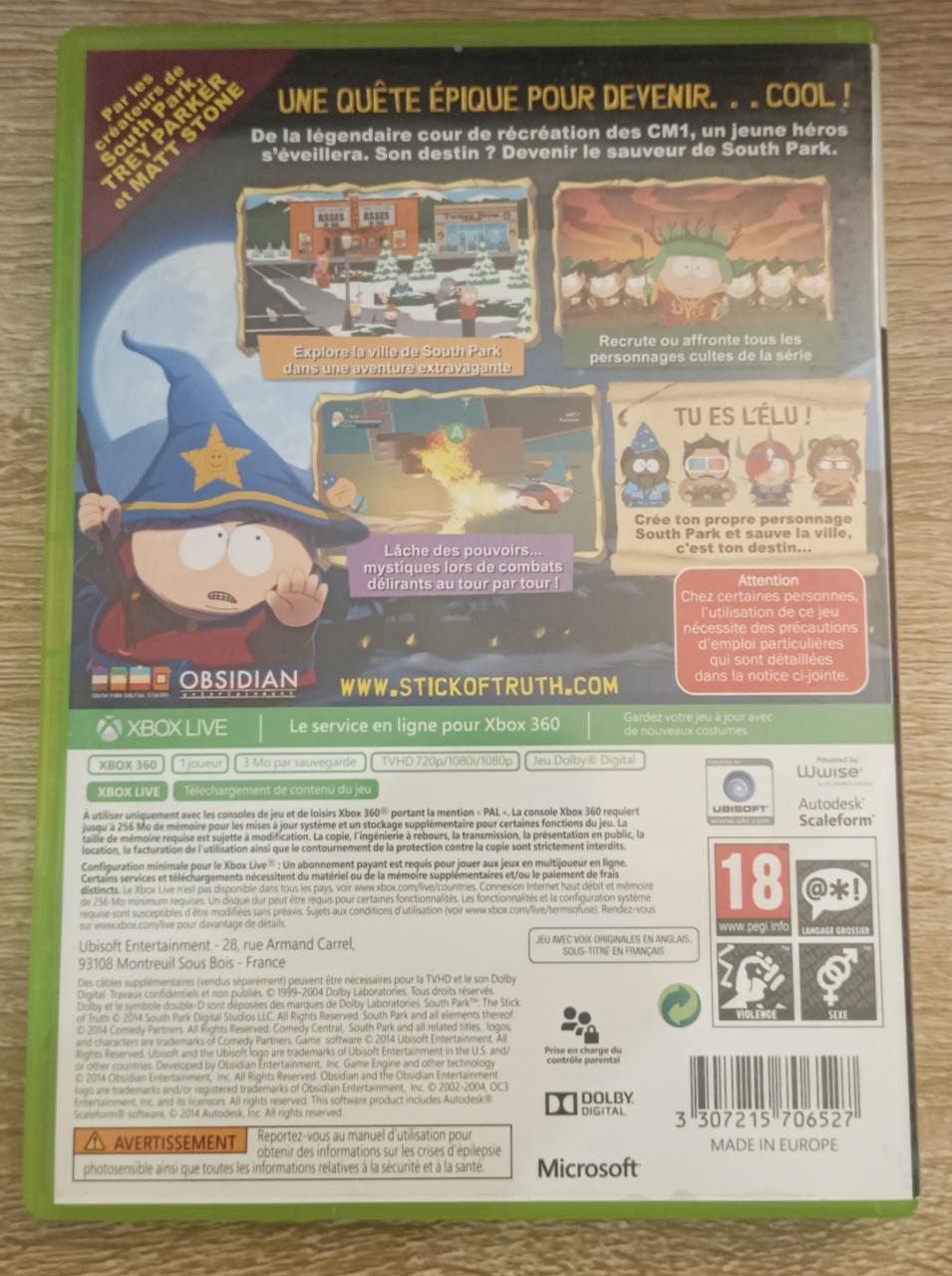 L3 - South Park - Le Bâton De La Vérité Xbox 360 - EAN : 3307215706527 - ARTICLE OCCASION EN TRES BON ETAT GÉNÉRAL - BOITIER ORIGINAL XBOX 360 - JEUX JOUABLE EN FRANCAIS - LIVRAISON ULTRA RAPIDE EN COLIS SUIVI PROTÈGE - COVER FR - COMPLET CIB
