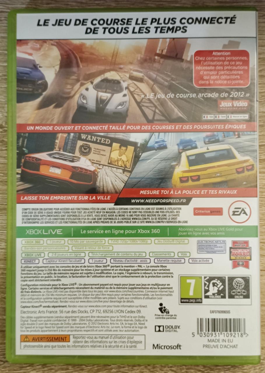 L2 - Need For Speed : Most Wanted Xbox 360 / EAN : 5030931109218 - ARTICLE OCCASION EN TRES BON ETAT GENERAL - TEST MACHINE OK - PACK COMPLET - LIVRAISON SUPER RAPIDE EN COLIS SUIVI PROTEGE - COVER FR - CIB