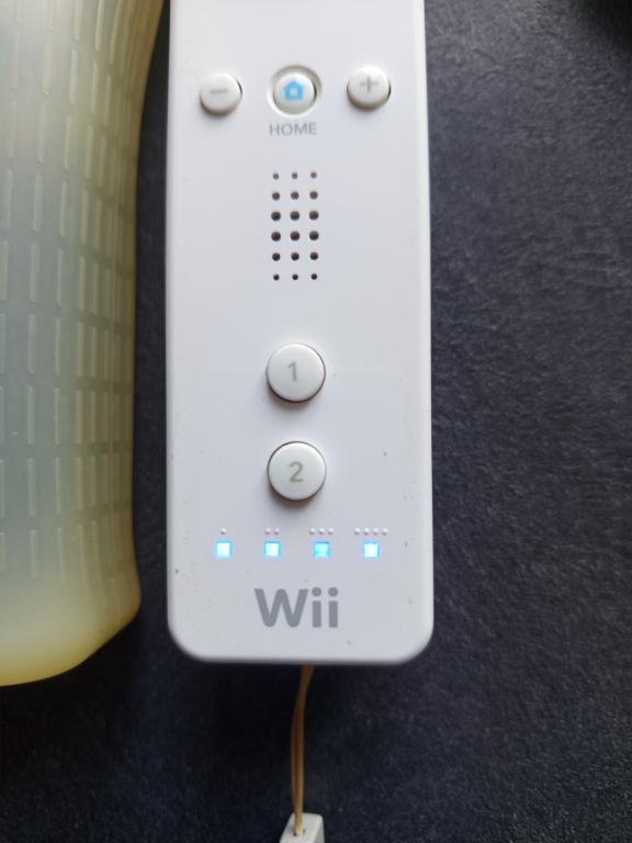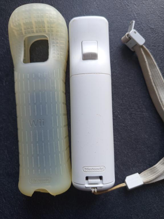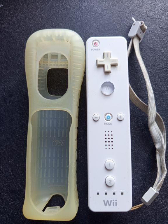 Wiimote vendue avec sa housse en silicone (jaunie) et sa dragonne officielles.